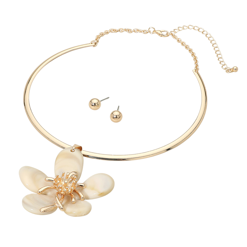 Flower Pendant Accent Collar Statement Necklace Flower Pendant Accent Collar Statement Necklace