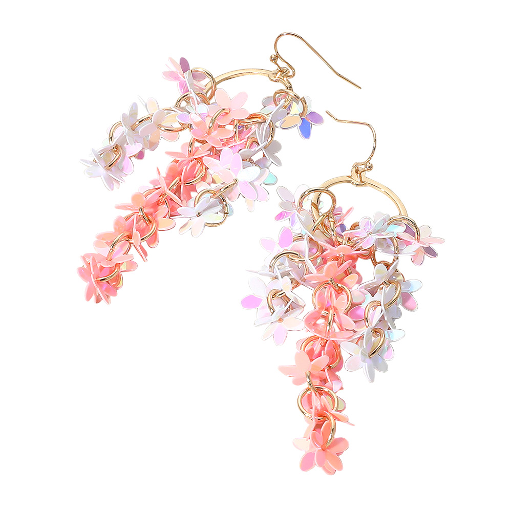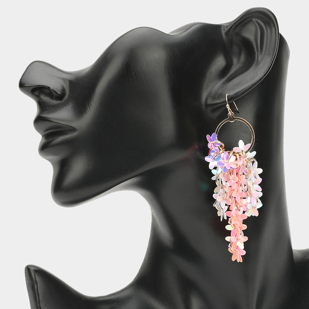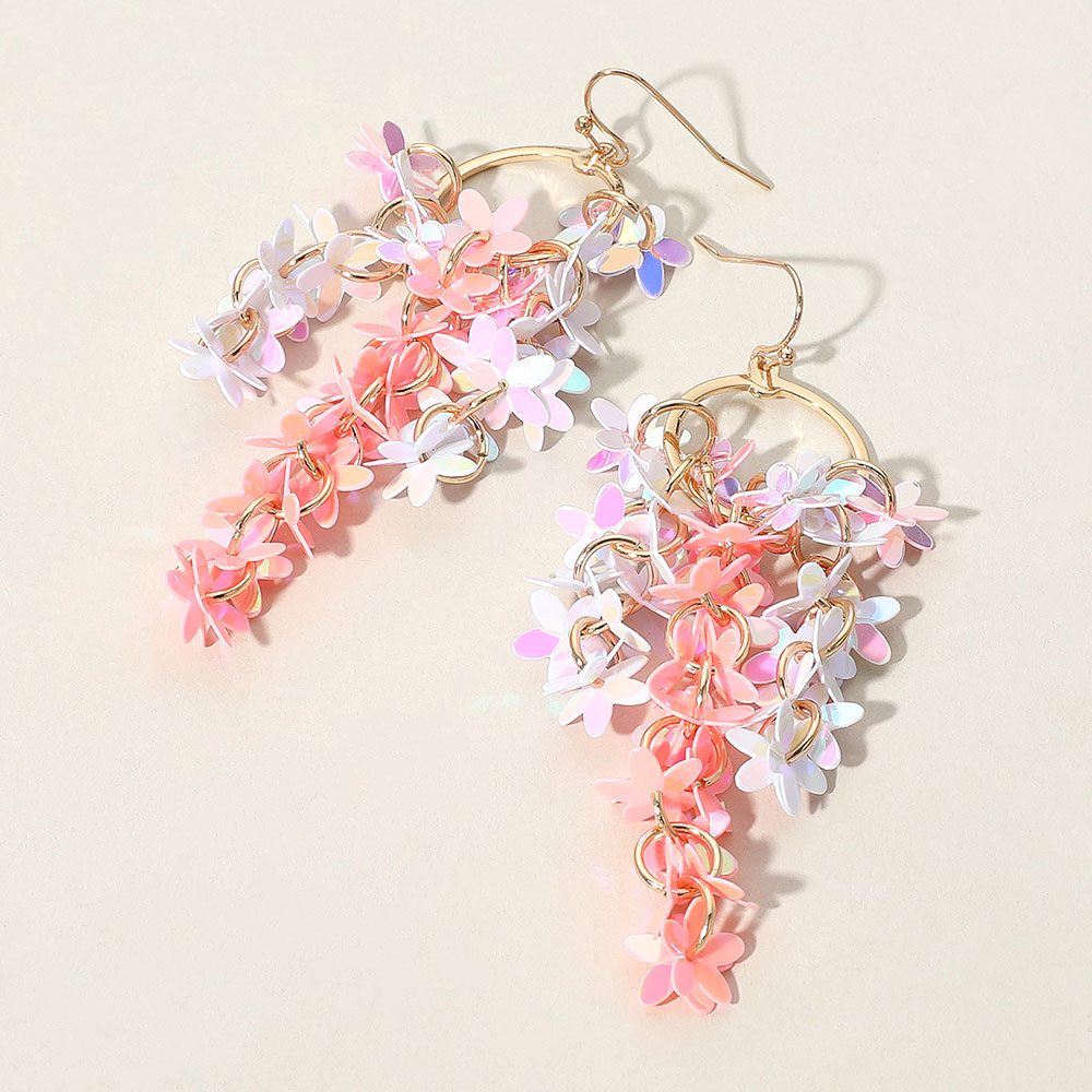 Felt Back Floral Seed Beaded Smile Dangle Earrings