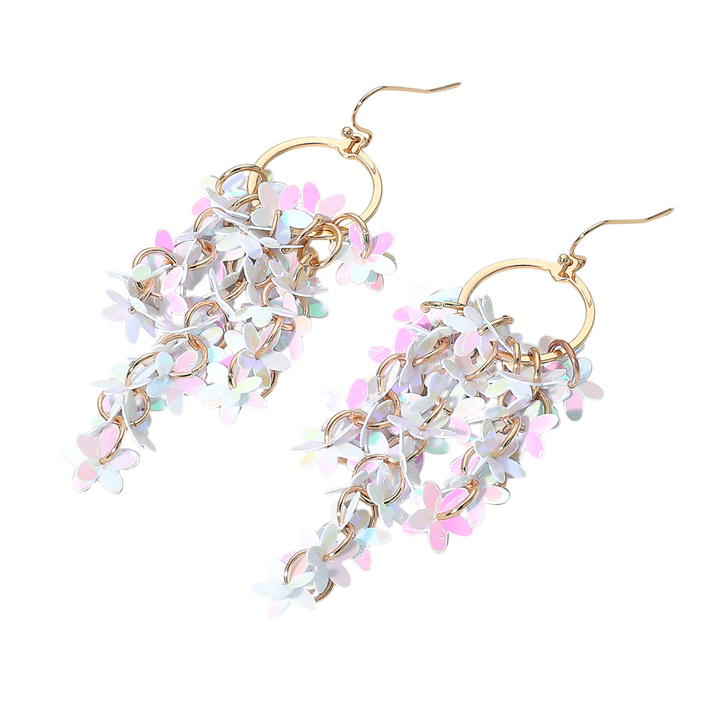 Celluloid Acetate Double Flower Link Dangle Earrings