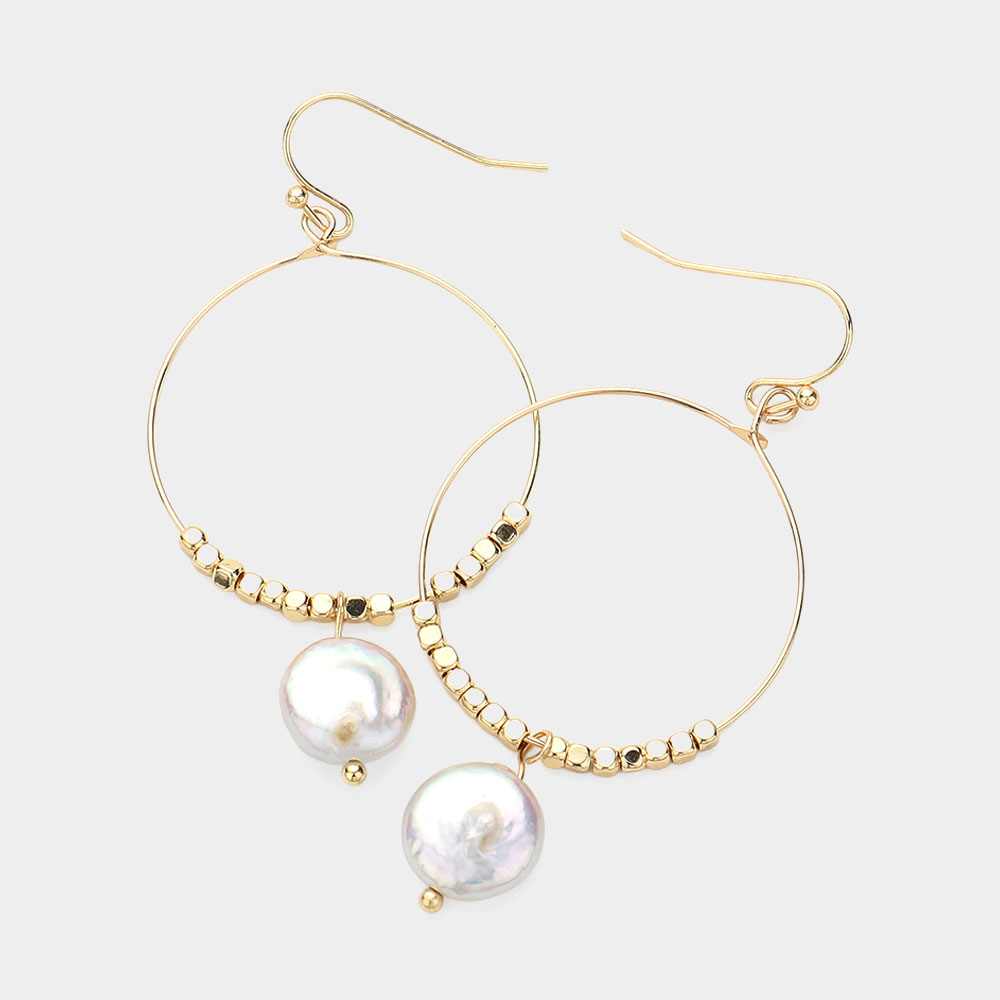 Freshwater Pearl Pointed Open Circle Wire Dangle Earrings