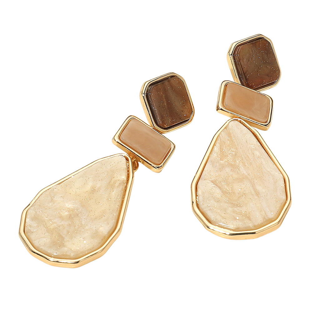 Details • Size : 1.1" X 2.9" • Post Back • Bold geometric drop earrings featuring layered shapes with glossy accents. These statement earrings combine modern artistry with timeless elegance, perfect for parties, evening wear, or elevating everyday outfits. Lightweight and stylish, they add a contemporary touch to any look. • Lead and Nickel Compliant