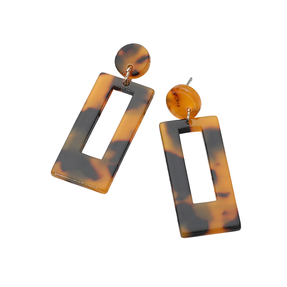 Details • Size : 0.6" X 1.8" • Post Back • Elevate your style with these geometric rectangle drop earrings, featuring a modern cut-out design for a bold and sophisticated look. Their lightweight structure and sleek pattern make them a perfect statement accessory for casual, business, or evening wear with effortless charm. • Lead and Nickel Compliant