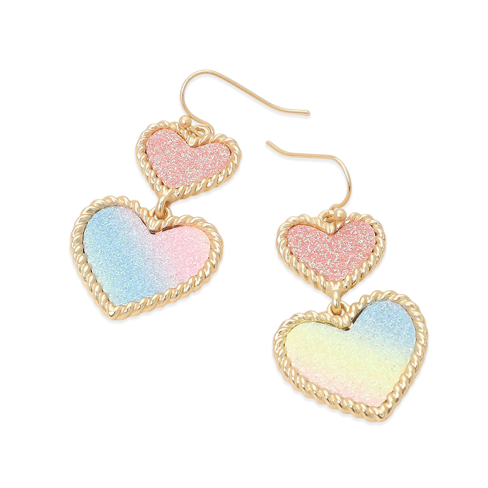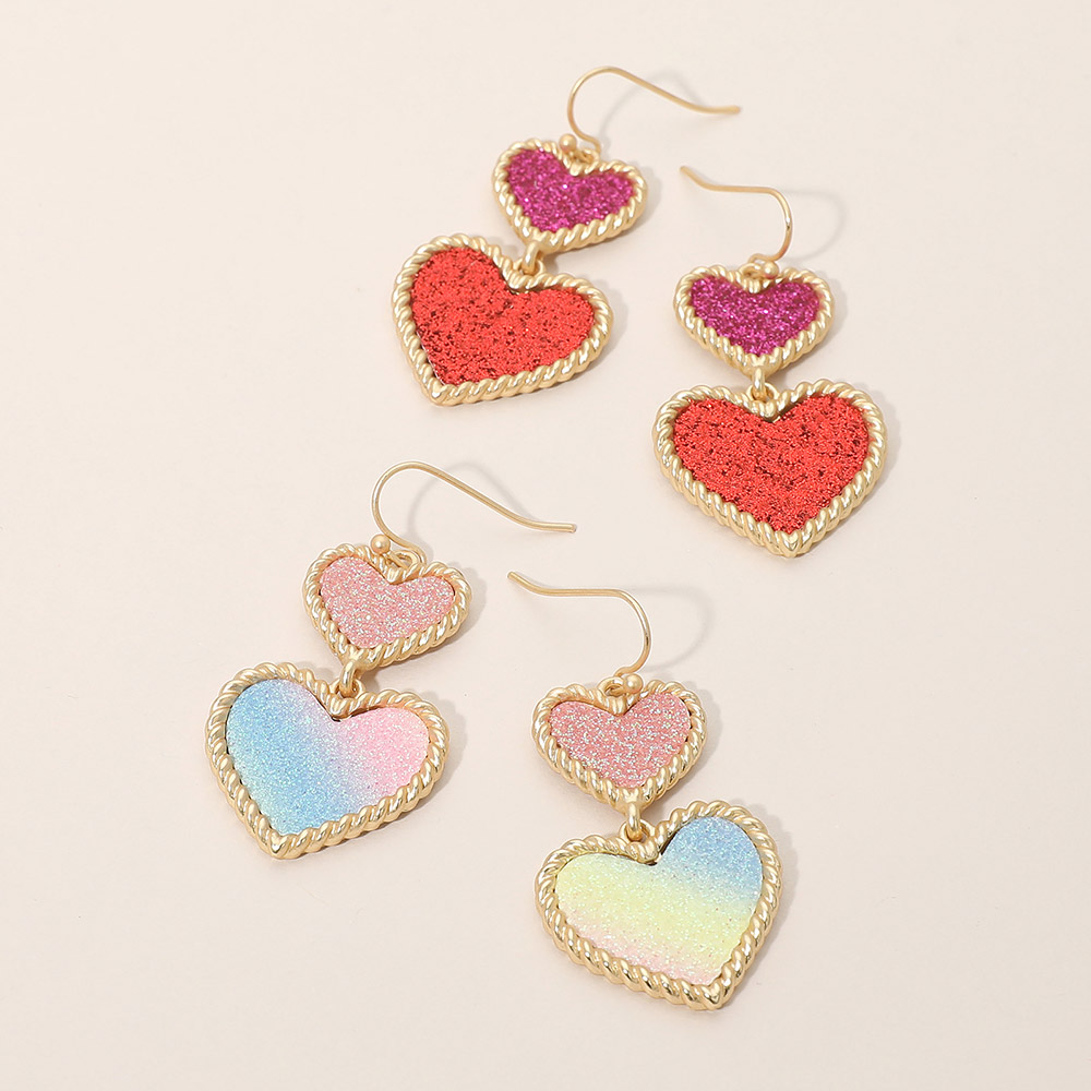 Glitter Double Heart Link Drop Dangle Earrings Glitter Double Heart Link Drop Dangle Earrings Glitter Double Heart Link Drop Dangle Earrings