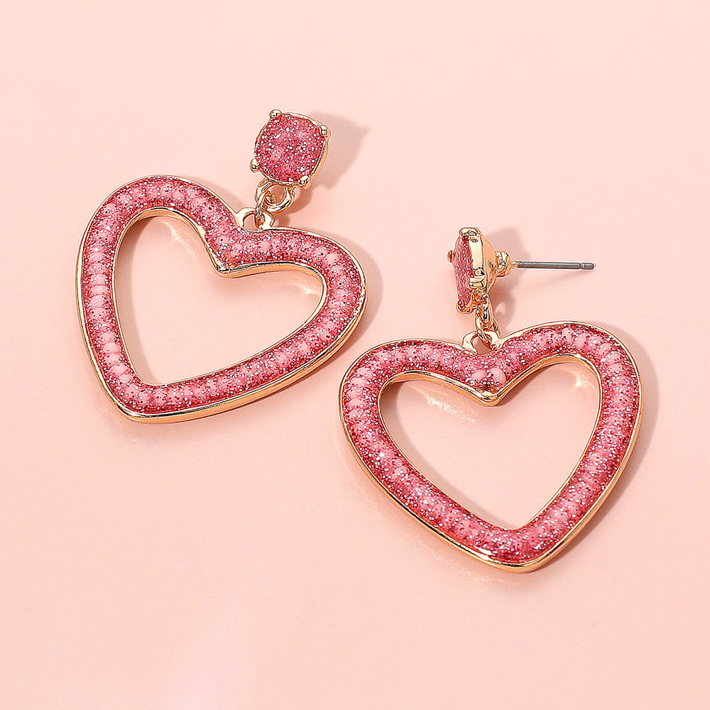 • Lightweight open-heart dangle earrings featuring a glittery accent finish and a bold drop-heart design. A stylish statement accessory ideal for gifting or adding a touch of sparkle to everyday and special-occasion looks.