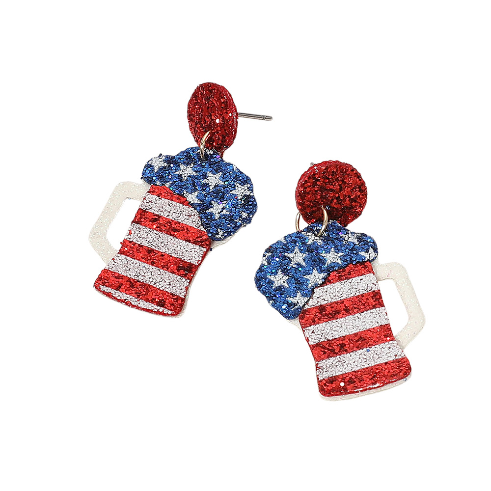 Glittered American USA Flag Beer Glass Dangle Earrings