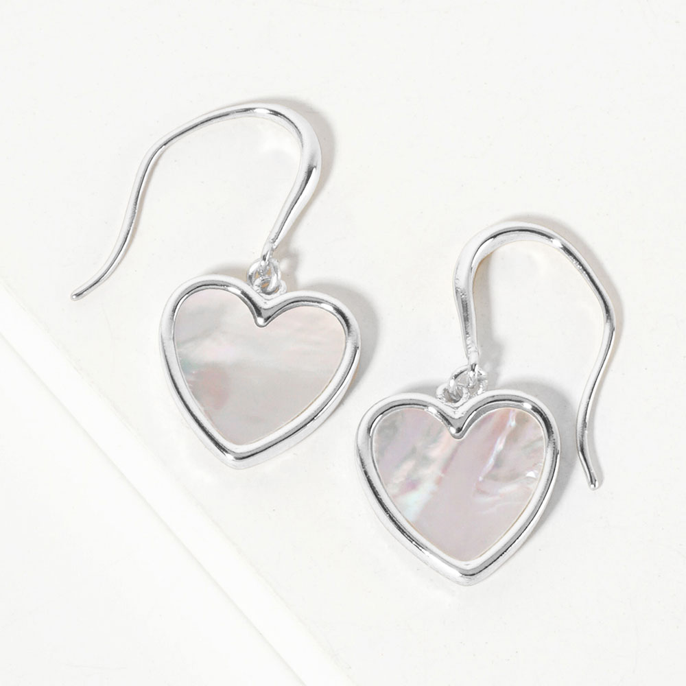 • Elegant heart dangle earrings featuring a smooth heart-shaped drop with a mother of pearl style finish. Lightweight hook design adds effortless charm for daily wear, special occasions, or gifting. A timeless accessory with a soft, romantic touch.