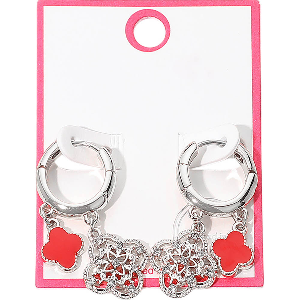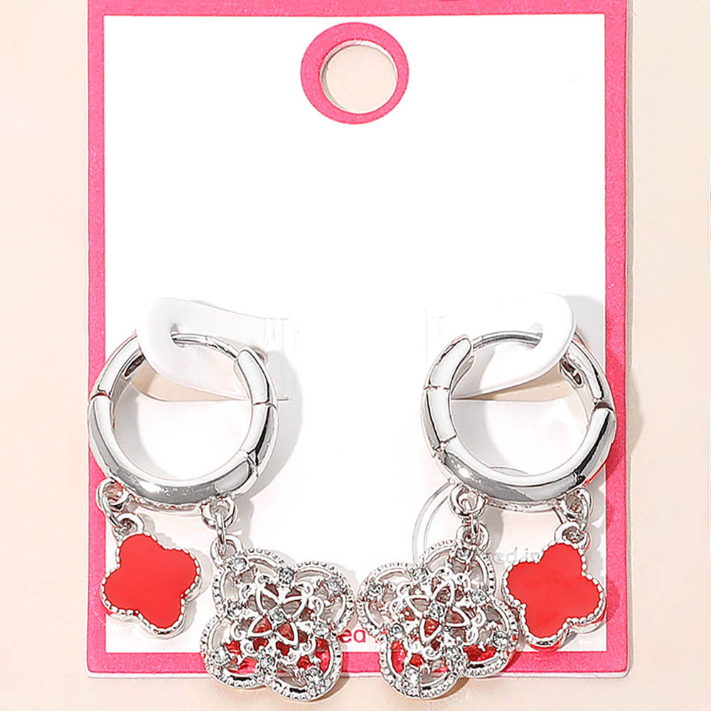 Details • Size : 0.7" X 0.9" • Huggie Back • Hoop earrings accented with delicate quatrefoil charms and intricate cutout details. Lightweight yet eye-catching, these earrings bring a touch of elegance to everyday outfits and special occasions. • Gold Dipped • Lead and Nickel Compliant