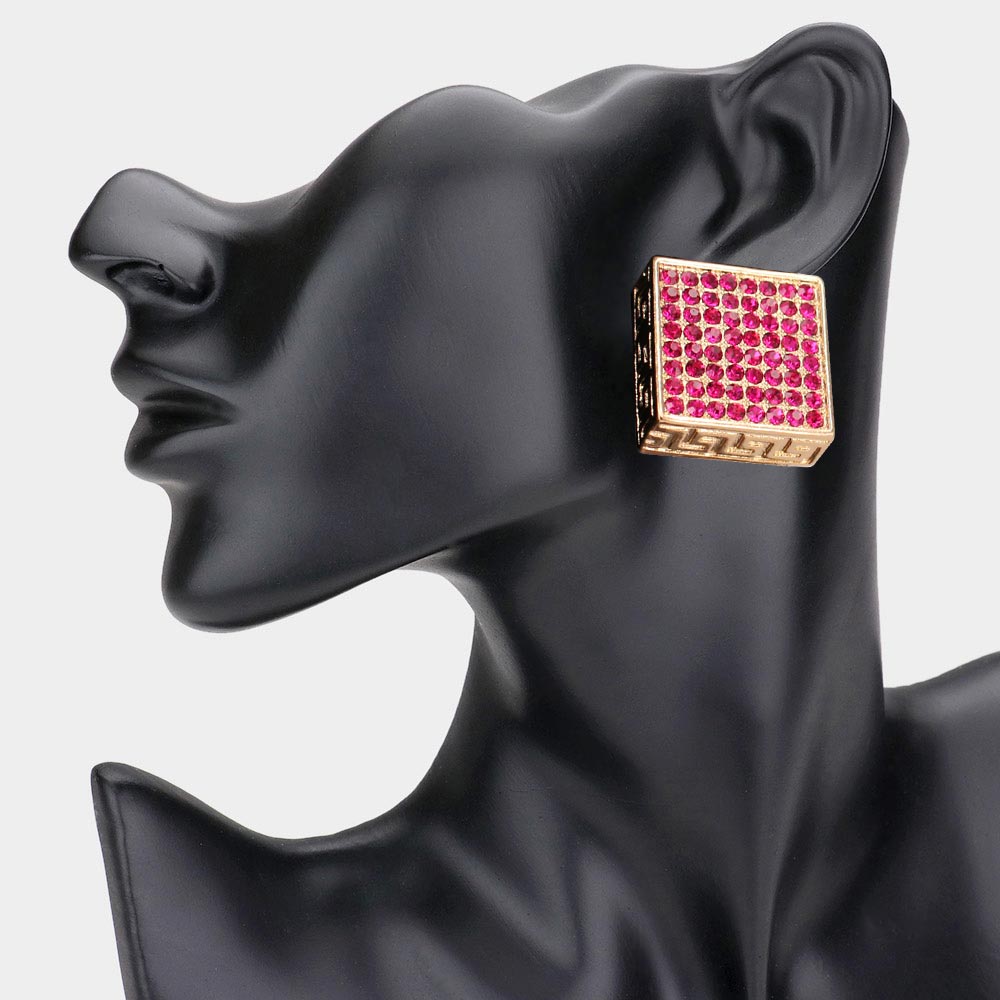 Greek Pattern Detailed Rhinestone Embellished Square Earrings Greek Pattern Detailed Rhinestone Embellished Square Earrings