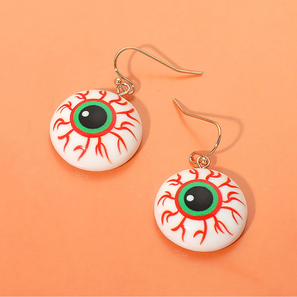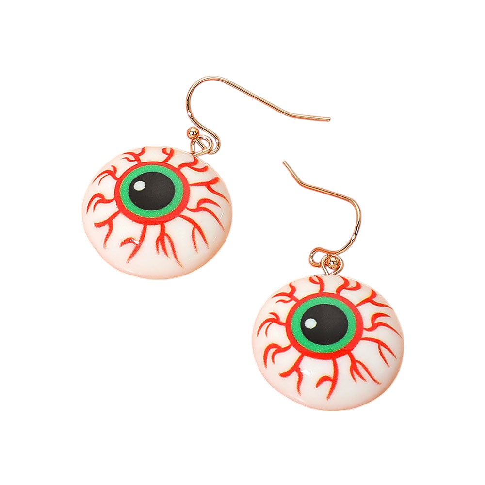 Details • Size : 0.8" X 1.25" • Fish Hook Back • Keep an eye on spooky style with these eyeball Halloween earrings, featuring bold red veins and a vivid green iris. Lightweight and eerie—perfect for Halloween parties, haunted house looks, or creepy-cute costumes. • Lead and Nickel Compliant