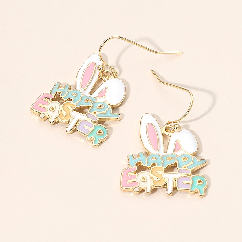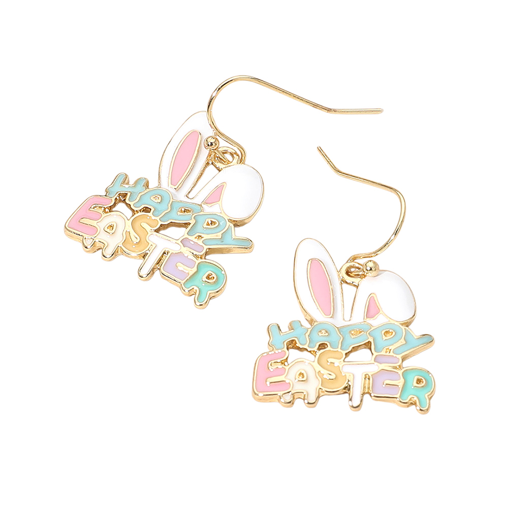 Details • Size : 0.8" X 1.3" • Fish Hook Back • Playful Easter-themed dangle earrings featuring a bunny motif with cheerful “Happy Easter” lettering. Designed to add festive charm and seasonal personality, these novelty earrings are perfect for spring events, holiday outfits, gift displays, and boutique assortments focused on fun, celebratory accessories. • Lead and Nickel Compliant