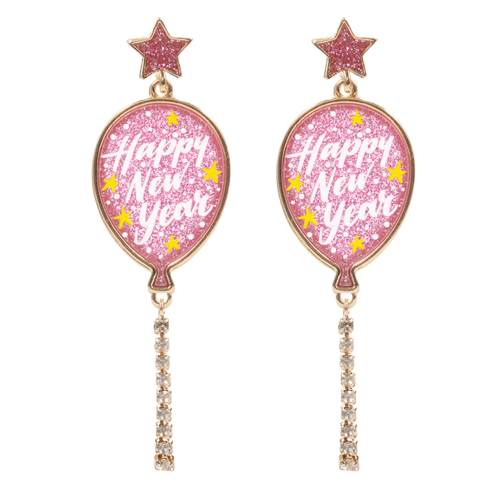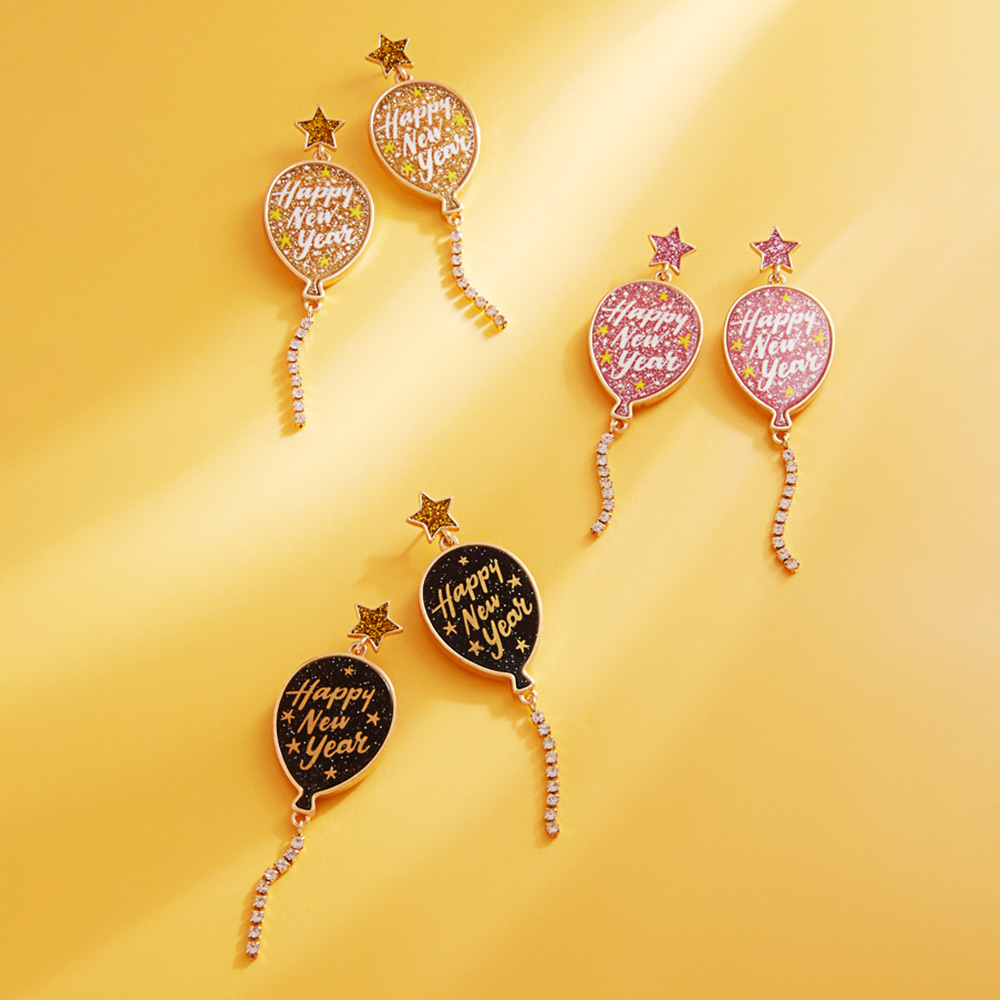 HAPPY NEW YEAR Message Balloon Dangle Earrings