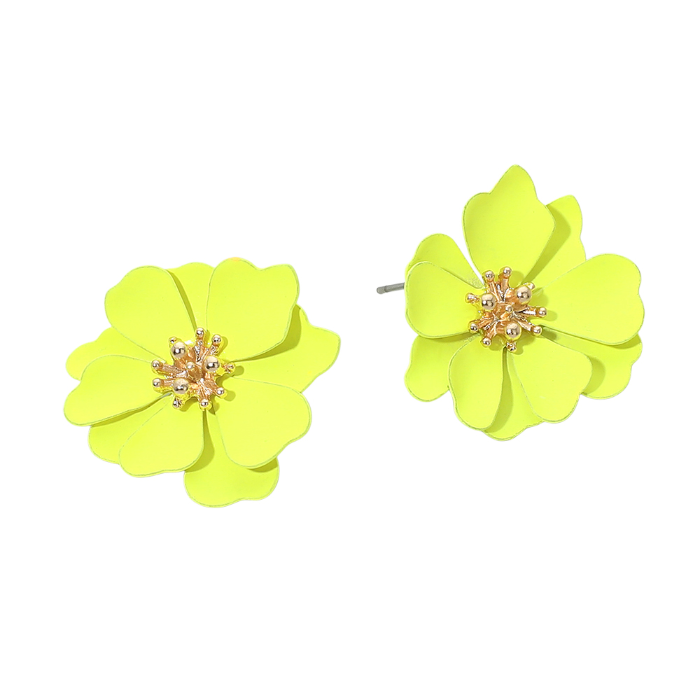 Details • Size : 1.2" X 1.1" • Post Back • Charming layered petal flower stud earrings designed with sculpted petal details and a dimensional floral silhouette. A versatile accessory for everyday styling, seasonal collections, boutiques, and gift-ready assortments, offering feminine appeal with a lightweight, easy-to-wear design. • Lead and Nickel Compliant