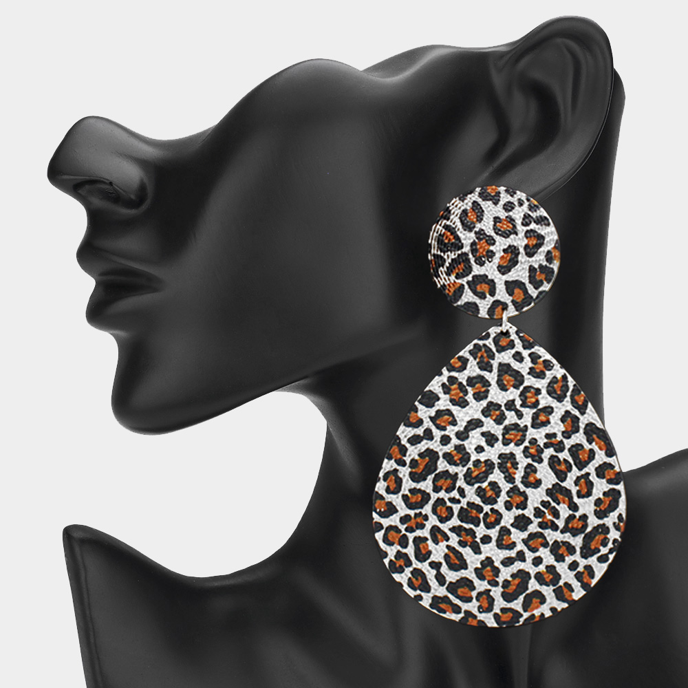 Leopard Patterned Oversized Textured Metal Teardrop Dangle Earrings