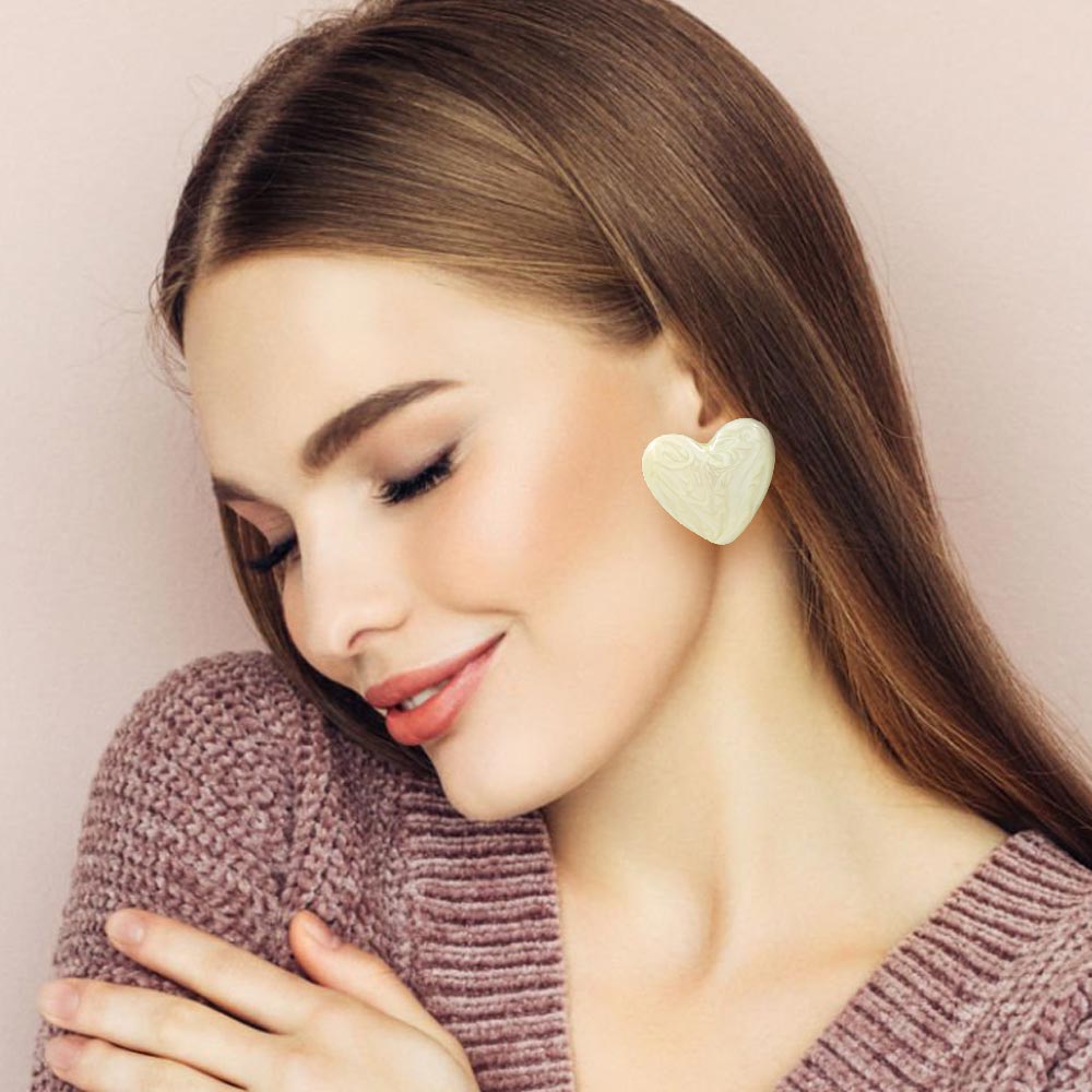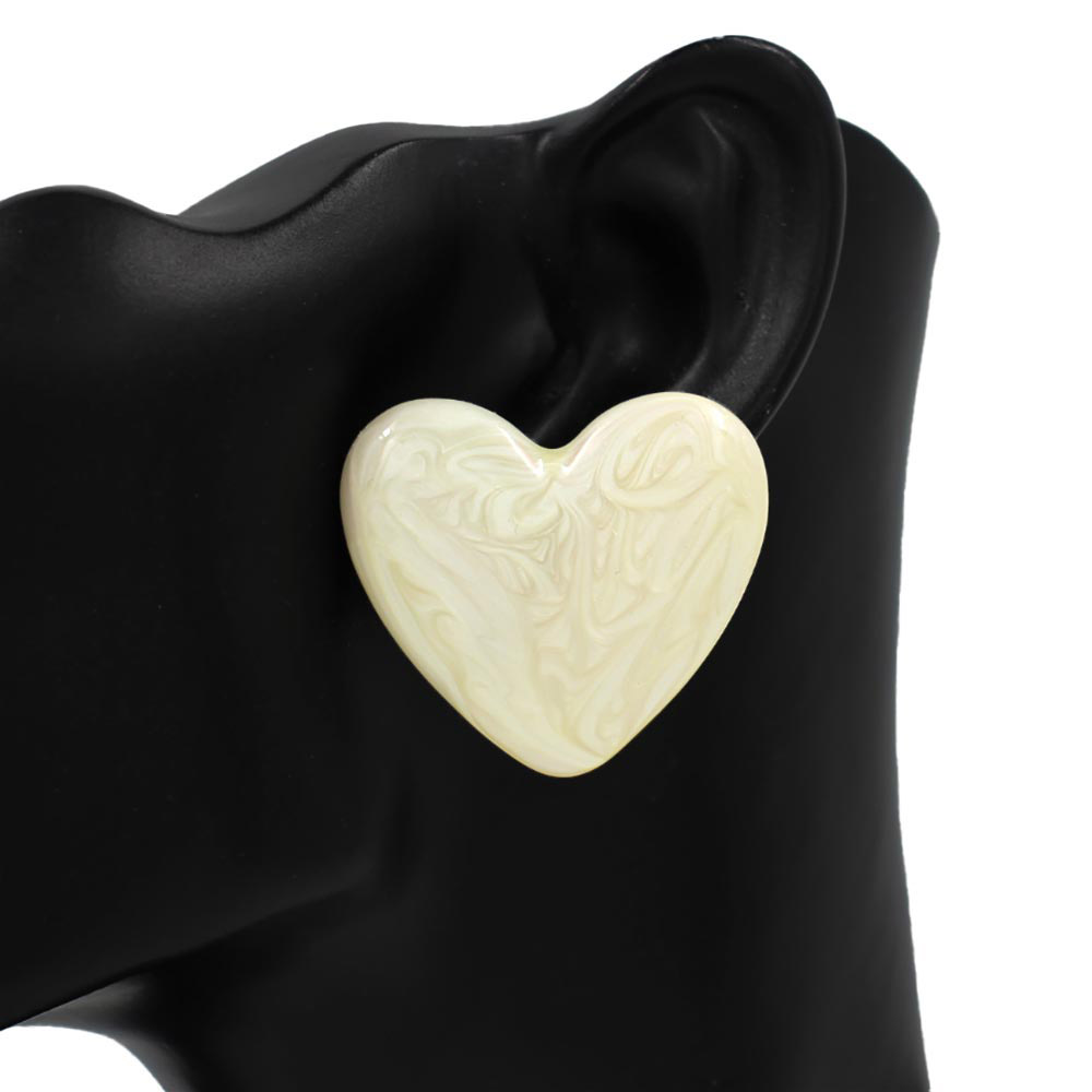 Details • Size : 1.5" X 1.3" • Post Back • Charming heart-shaped stud earrings designed with a smooth, polished finish and bold silhouette. Perfect for boutiques and gift collections, these studs offer playful elegance for daily wear, casual outfits, date nights, and trendy seasonal styling. • Lead and Nickel Compliant