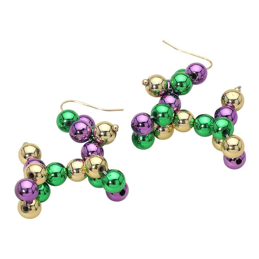 Details • Size : 1.5" X 2" • Fish Hook Back • These Mardi Gras bead cluster drop earrings deliver playful movement and bold dimension for festive styling. Designed to stand out at parades, parties, and themed celebrations, they add eye-catching charm to any outfit while remaining lightweight and easy to wear, making them a strong choice for seasonal collections, gift assortments, and statement accessory displays. • Lead and Nickel Compliant