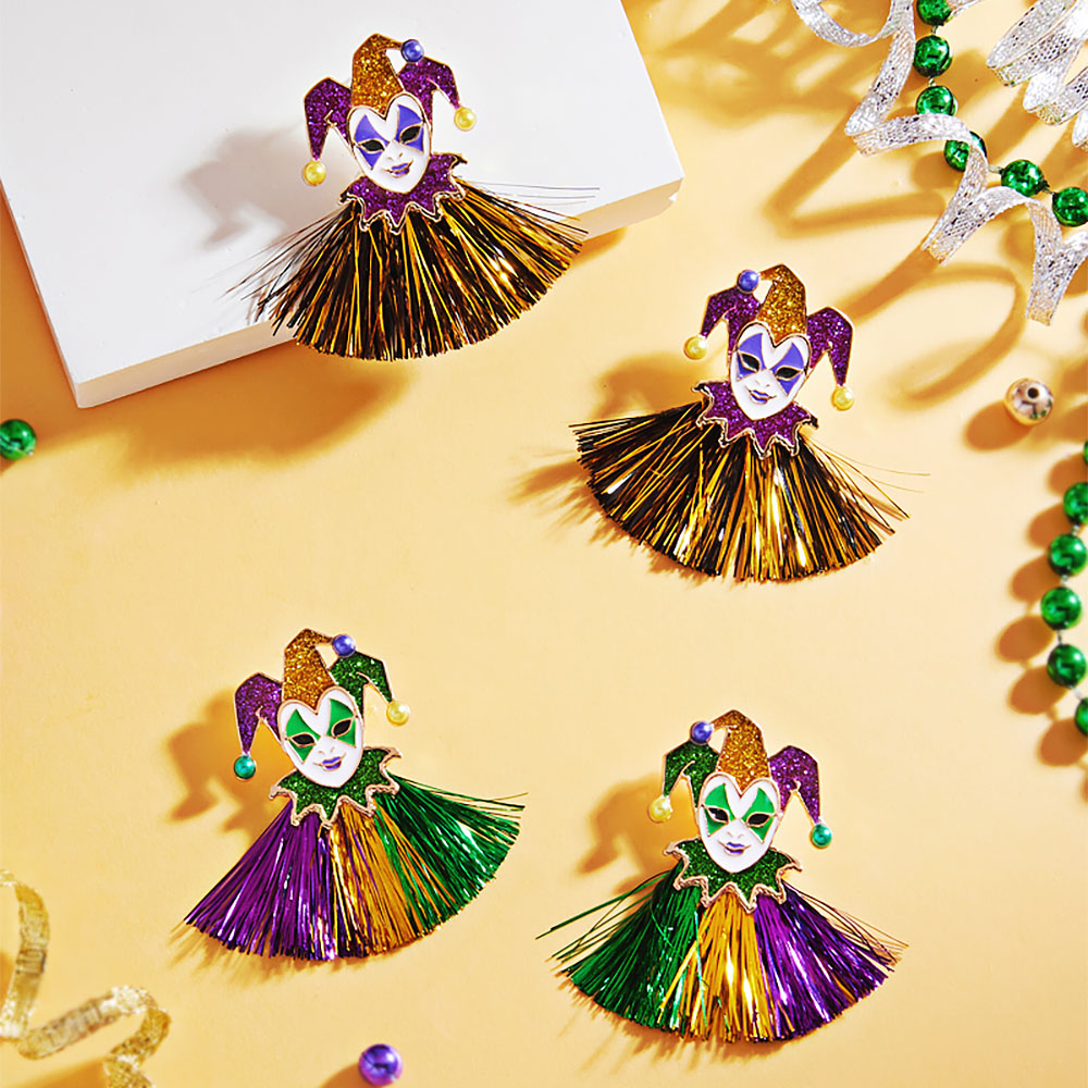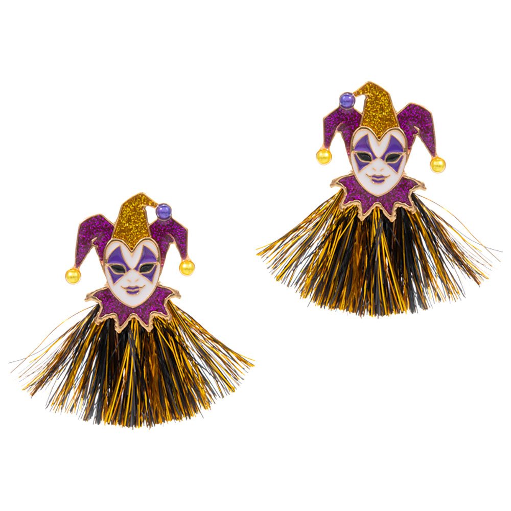 • Celebrate in vibrant style with these Mardi Gras Jester Face Tassel Earrings. Designed for parties and parades, they feature bold details and shimmering tassels that capture the joyful spirit of the season, making them perfect for costumes, events, or festive gatherings.