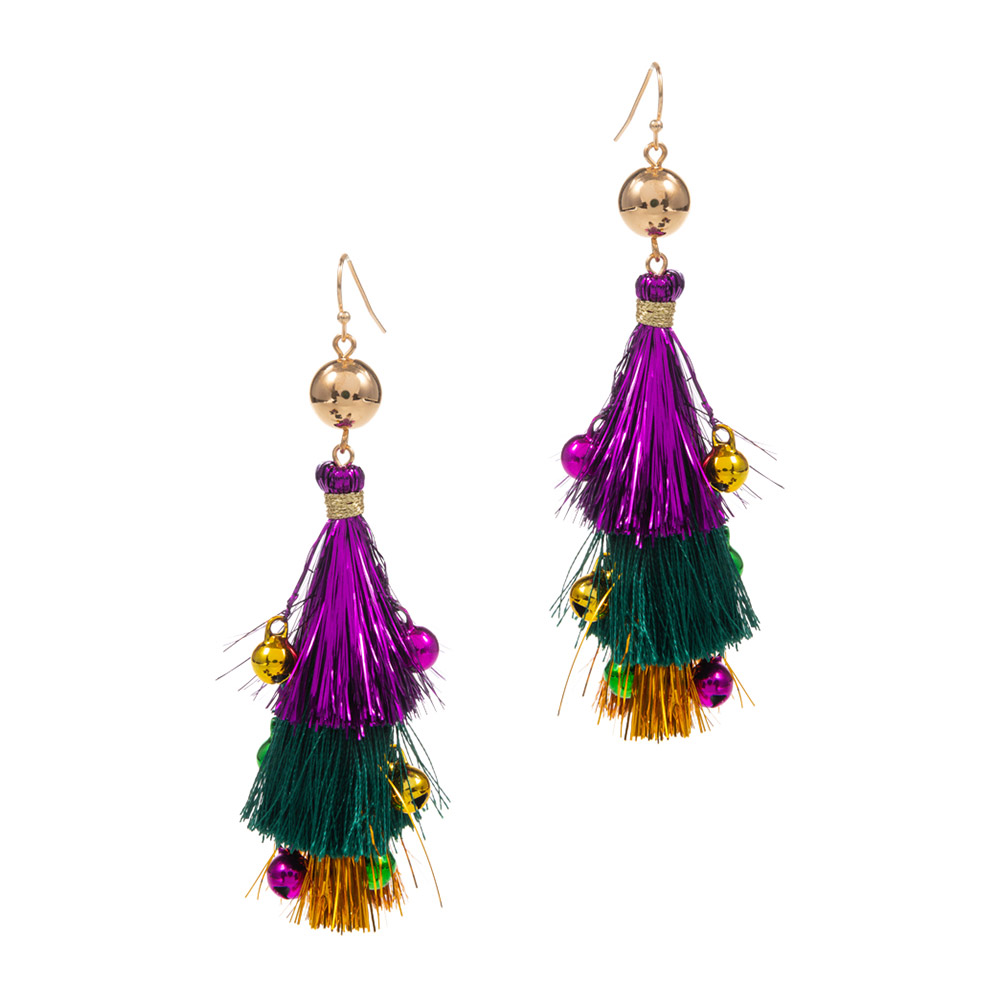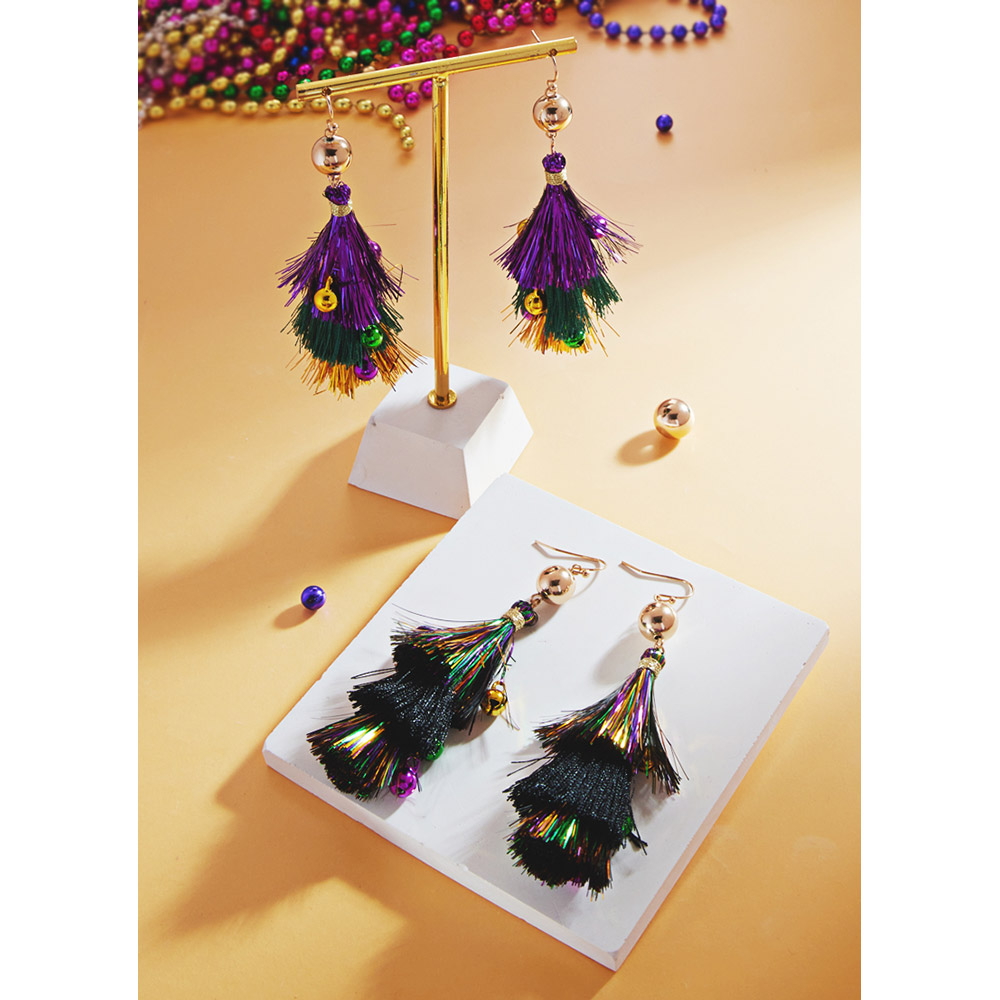 Mardi Gras Triple Fringe Layered Dangle Earrings