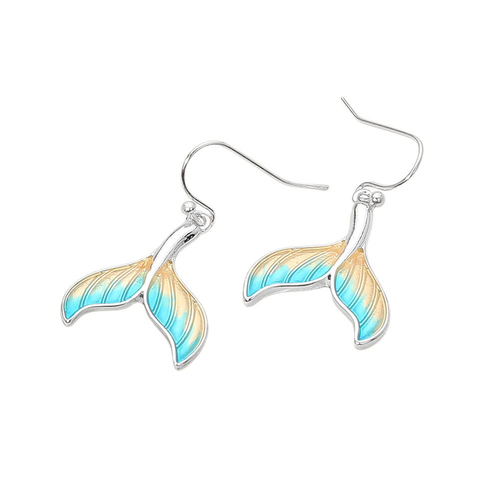 Details • Size : 0.8" X 1.25" • Fish Hook Back • Playful mermaid tail dangle earrings inspired by ocean fantasy and coastal style. A charming statement accessory with graceful movement, perfect for beach boutiques, resort collections, summer gift shops, and nautical or sea-themed jewelry assortments. • Lead and Nickel Compliant