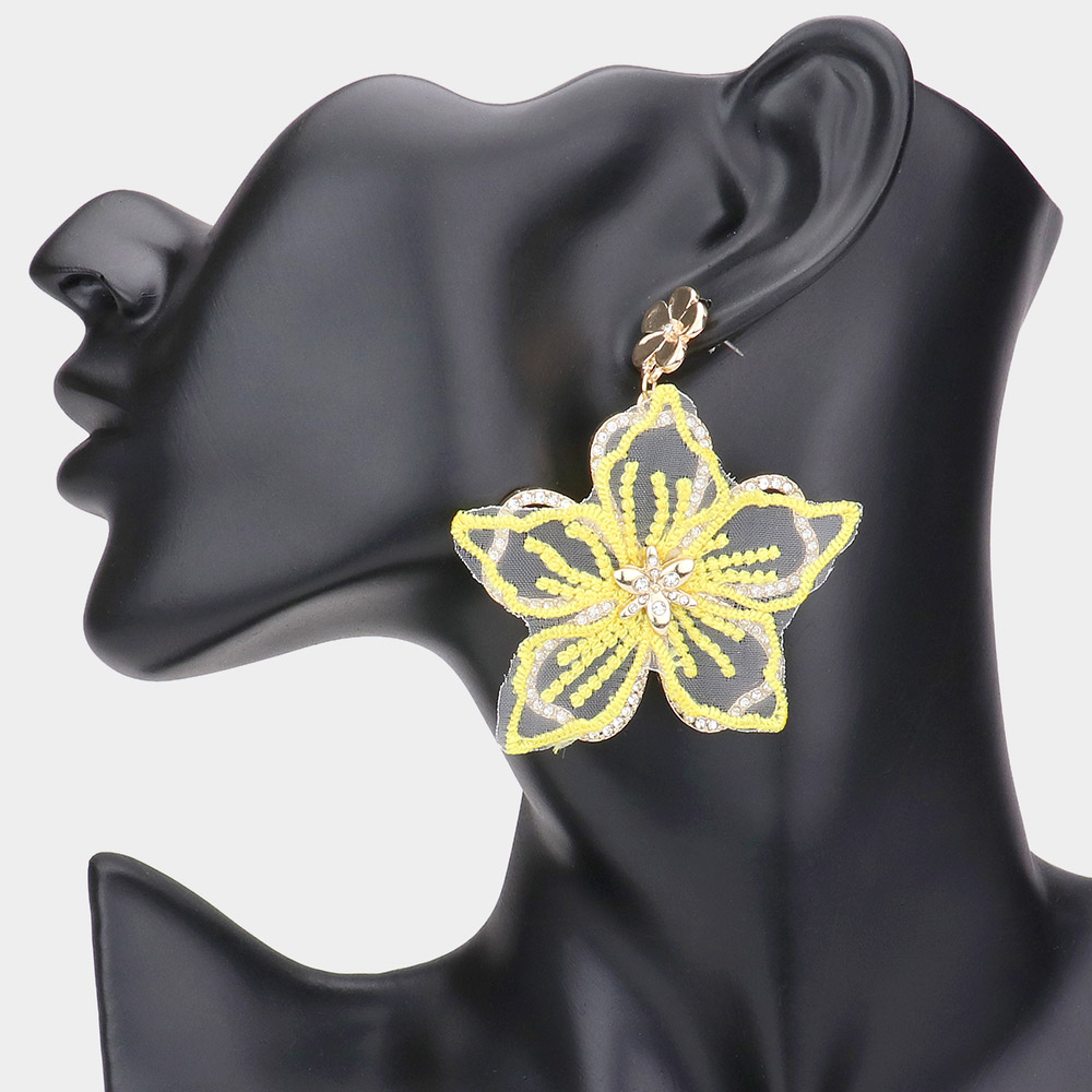 Pearl Accent Chain Detail Floral Long Drop Earrings