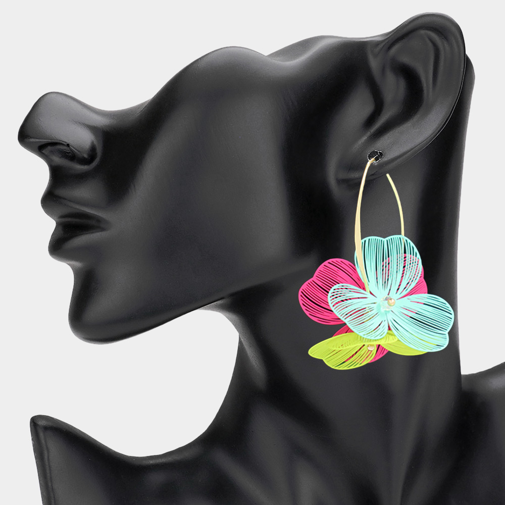 Flower CZ Stone Cluster Dangle Evening Earrings