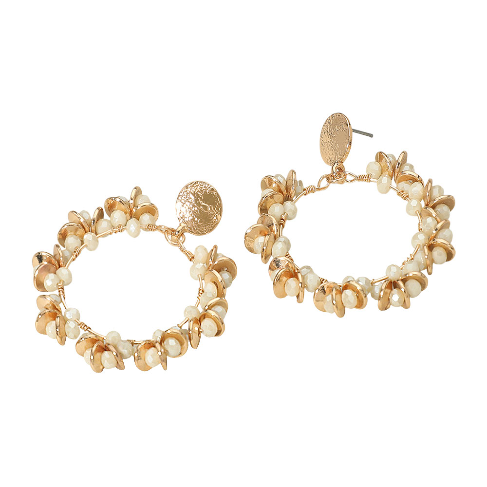 Metal Disc Faceted Beaded Open Ring Dangle Earrings Metal Disc Faceted Beaded Open Ring Dangle Earrings