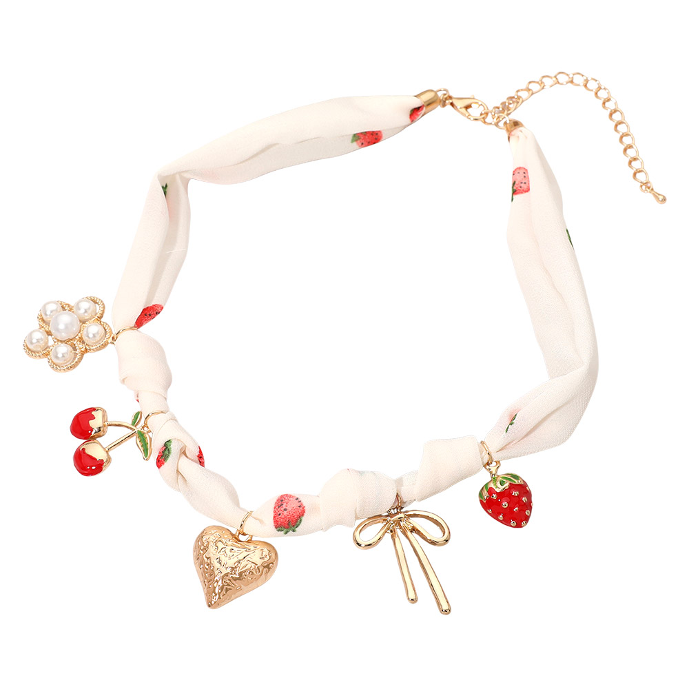 Details • Necklace Size : 16.5" + 3" L • Decor Size : 1.5" L • Scarf style necklace designed with soft drape detailing and multiple charm accents for a playful, feminine look. Features decorative pendants that add movement and visual interest, making it ideal for boutique styling, seasonal collections, and layered outfit pairings. • Lead and Nickel Compliant
