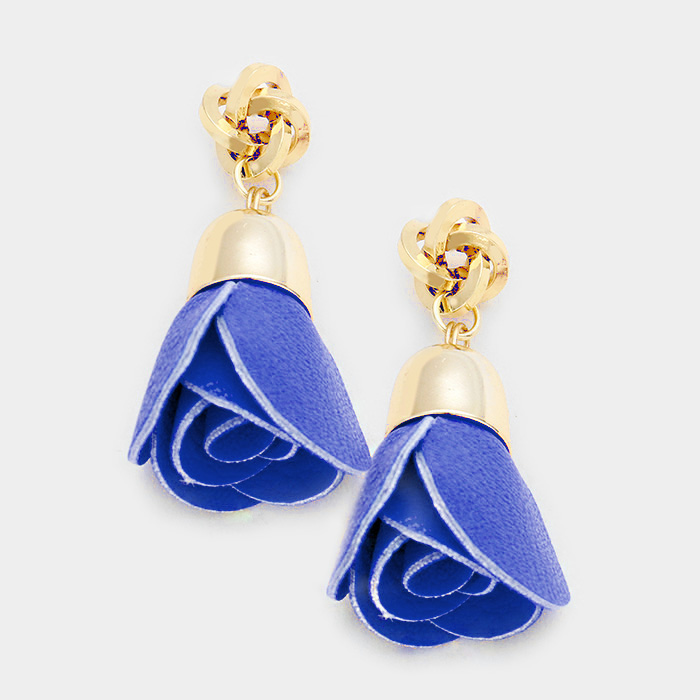 Metal Knot Drop Faux Leather Flower Earrings
