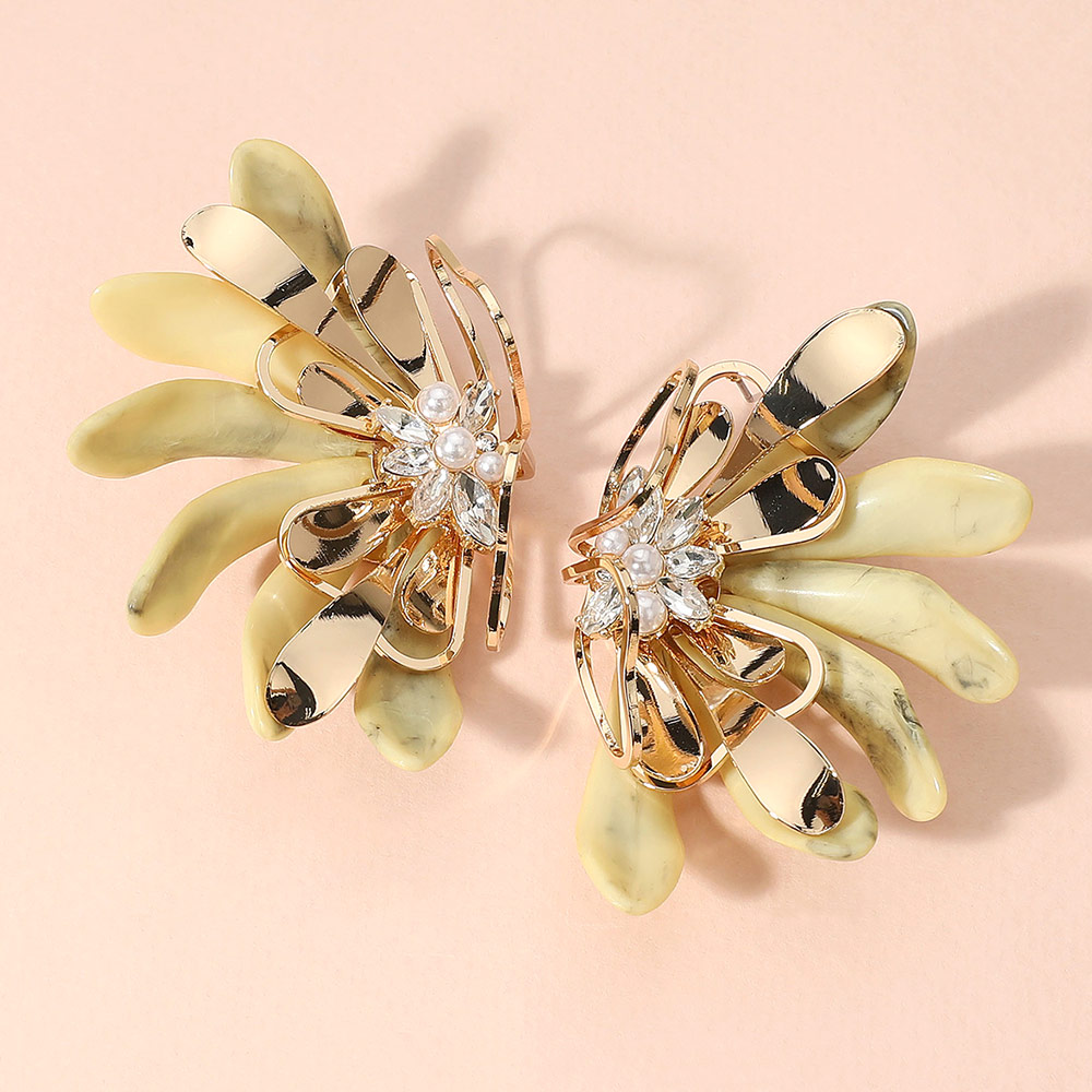 Oversized Marquise Triple Flower Chandelier Evening Earring