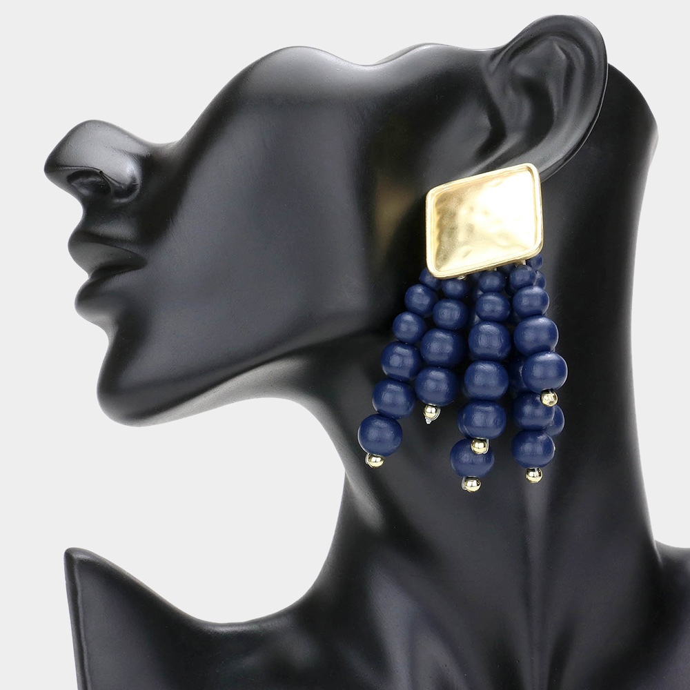 Natural Stone Pearl Wood Pointed Faceted Heishi Beaded Double Layered Necklace