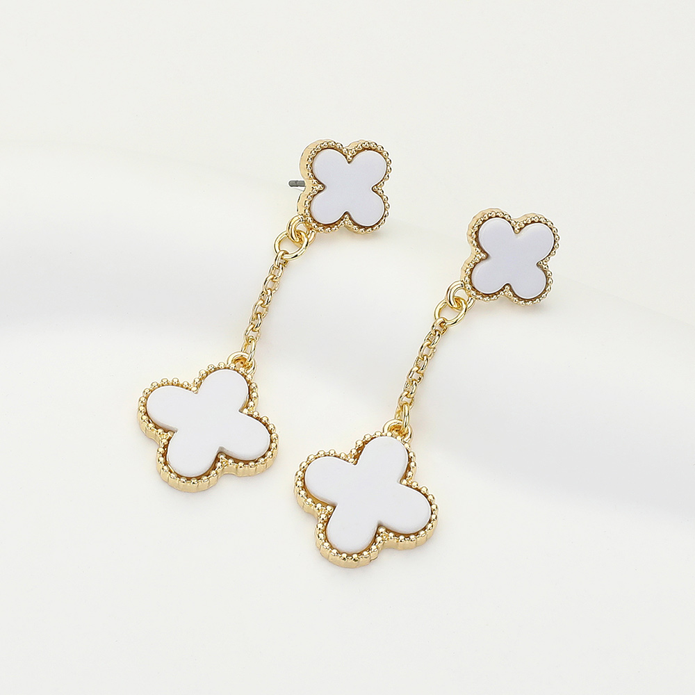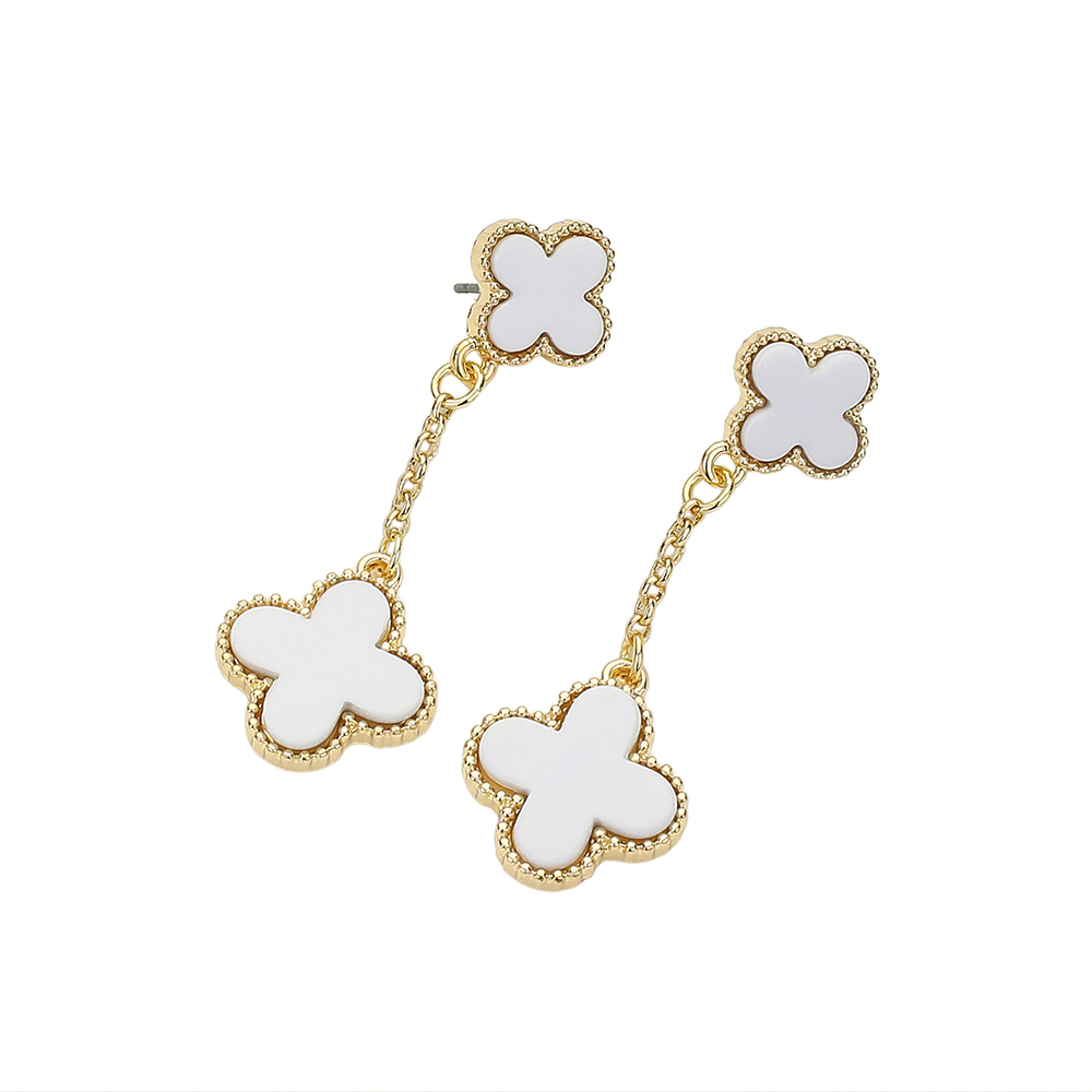 Natural Stone Quatrefoil Dropdown Dangle Earrings