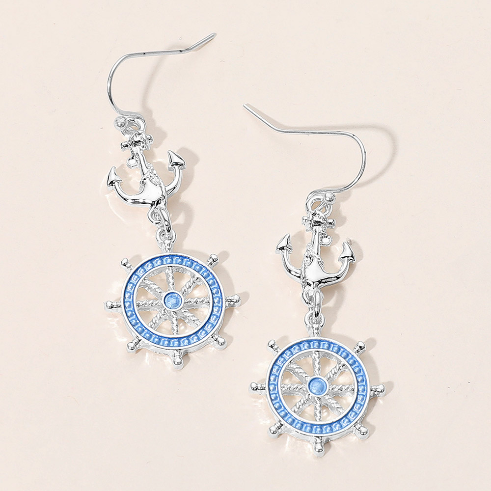 Nautical Anchor Wheel Link Drop Dangle Earrings