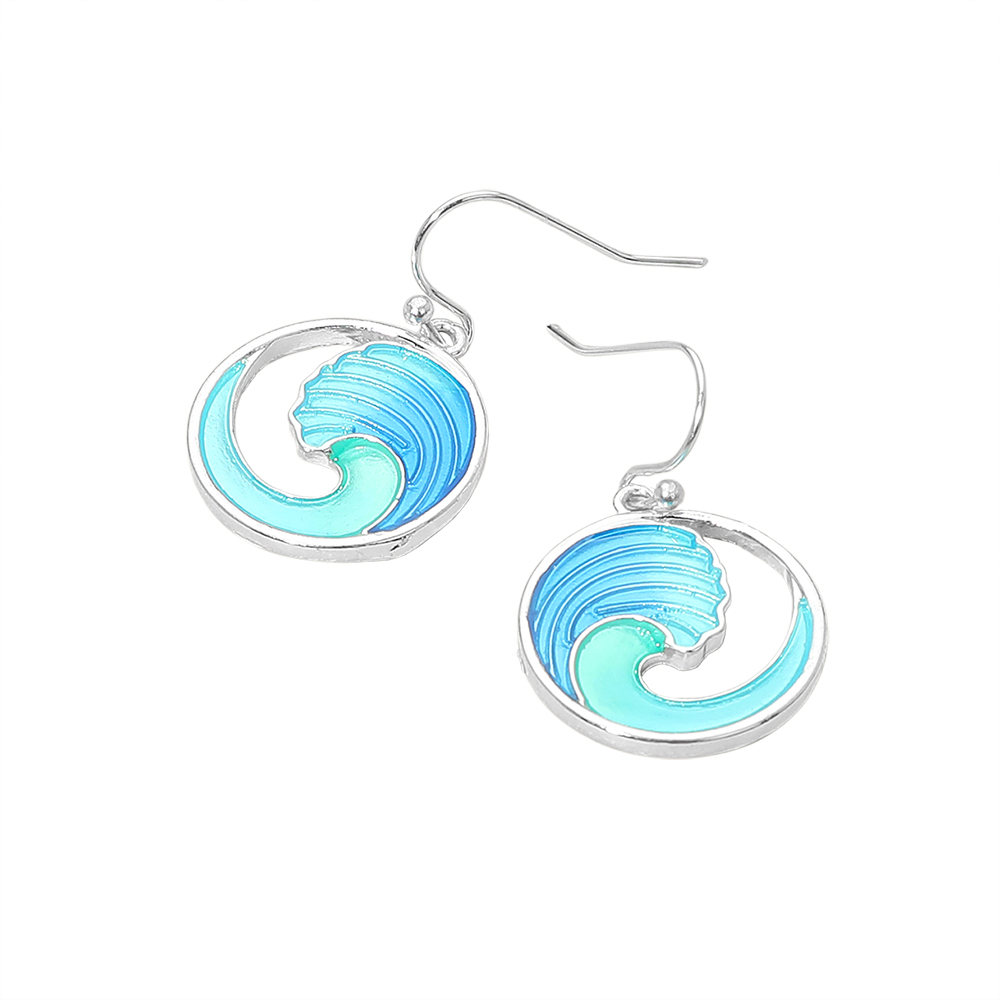 Details • Size : 0.75" X 1.25" • Fish Hook Back • Stylish wave-inspired dangle earrings featuring a flowing swirl design that captures coastal movement and modern charm. A versatile accessory for beach boutiques, resort shops, summer collections, gift stores, and ocean-themed jewelry assortments. • Lead and Nickel Compliant