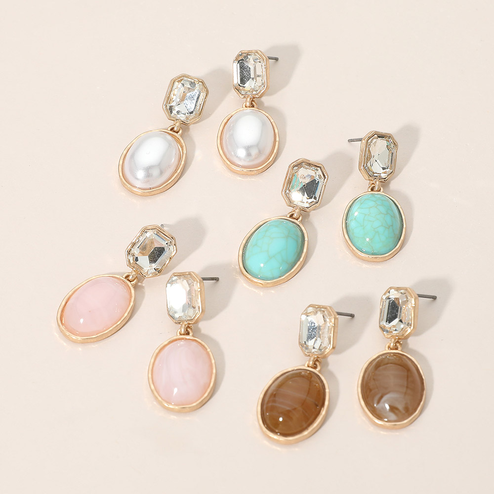 Oval Stone Drop Earrings