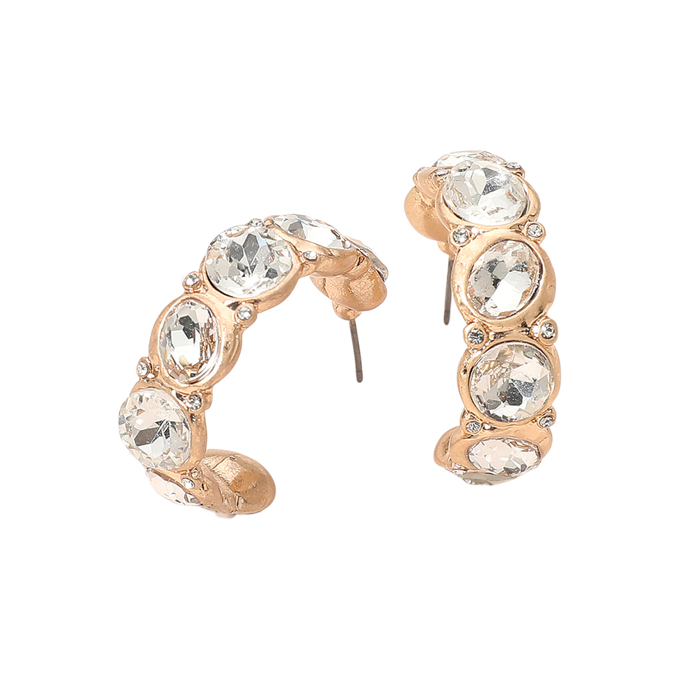 • Make a glamorous statement with these Oval Round Faceted Stone Embellished Open Hoop Earrings. Designed with multiple faceted stones set in a bold curved frame, these earrings capture the light beautifully, adding effortless sophistication to both day and evening looks.