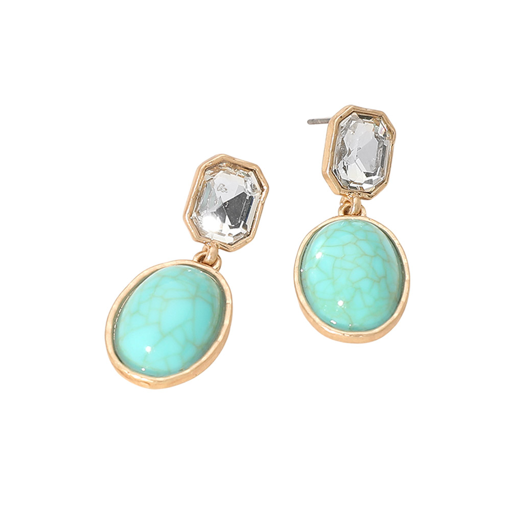 Oval Stone Drop Earrings