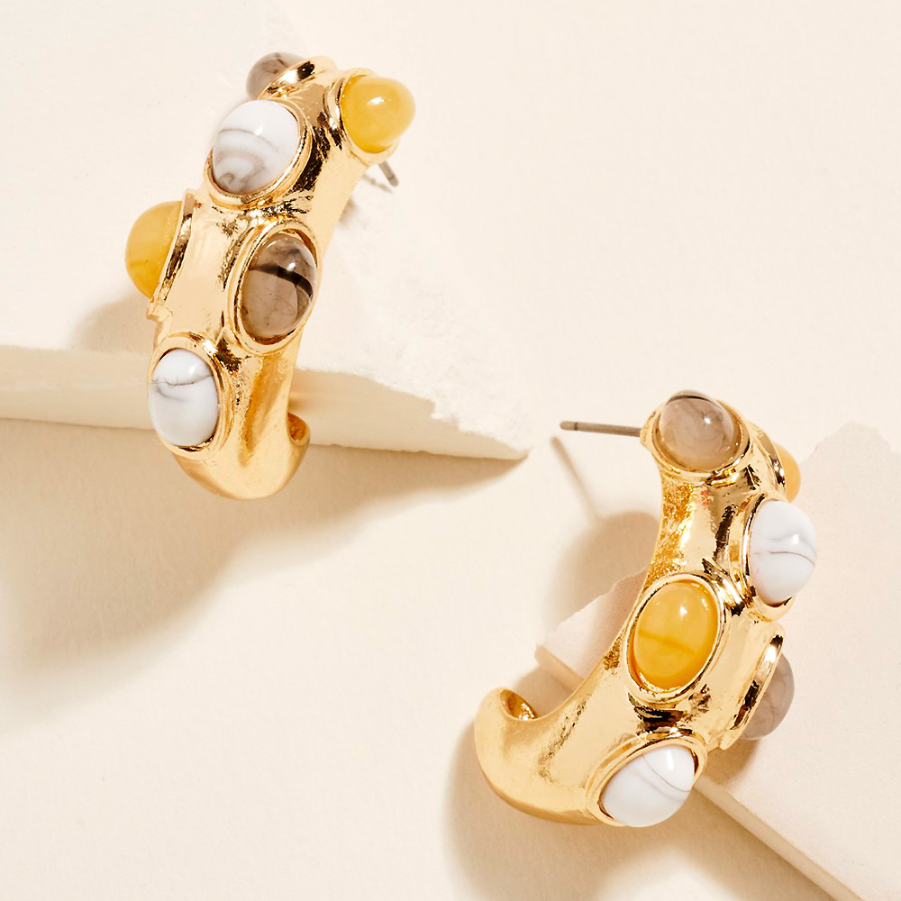 Oval Stone Embellished Chunky Hoop Earrings Oval Stone Embellished Chunky Hoop Earrings