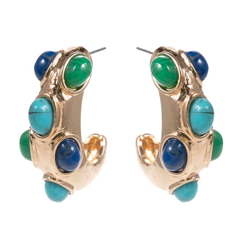 Oval Stone Embellished Chunky Hoop Earrings Oval Stone Embellished Chunky Hoop Earrings