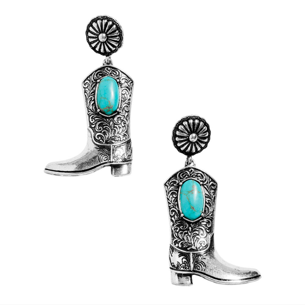 Details • Size : 1.25" X 2.25" • Titanium Post Back • Eye-catching dangle earrings shaped in a classic western boot motif with ornate detailing, made to add bold personality to casual outfits, concerts, festivals, themed events, or everyday styling for fans of statement accessories and standout fashion pieces. • Lead and Nickel Compliant