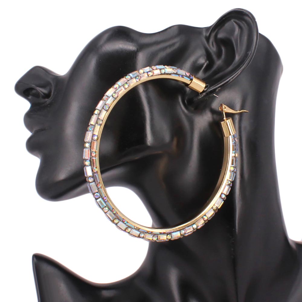 Oversized Baguette Rhinestone Embellished Hoop Earrings