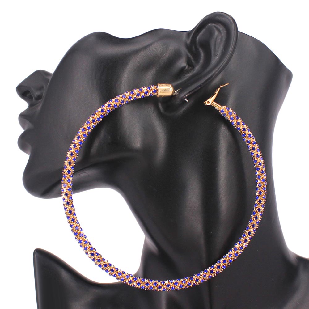 Details • Size : 4" X 4" • Omega Closure • Shine bright with these oversized rhinestone hoop earrings designed for maximum sparkle and glamour. Perfect for parties, night outs, or special events, they deliver bold style and lightweight comfort, making them the ultimate statement accessory for standout looks. • Lead and Nickel Compliant