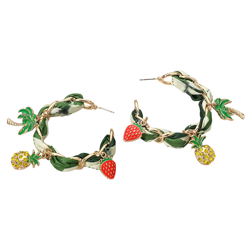 Palm Tree Pineapple Strawberry Charm Fabric Scarf Hoop Earrings Palm Tree Pineapple Strawberry Charm Fabric Scarf Hoop Earrings Palm Tree Pineapple Strawberry Charm Fabric Scarf Hoop Earrings