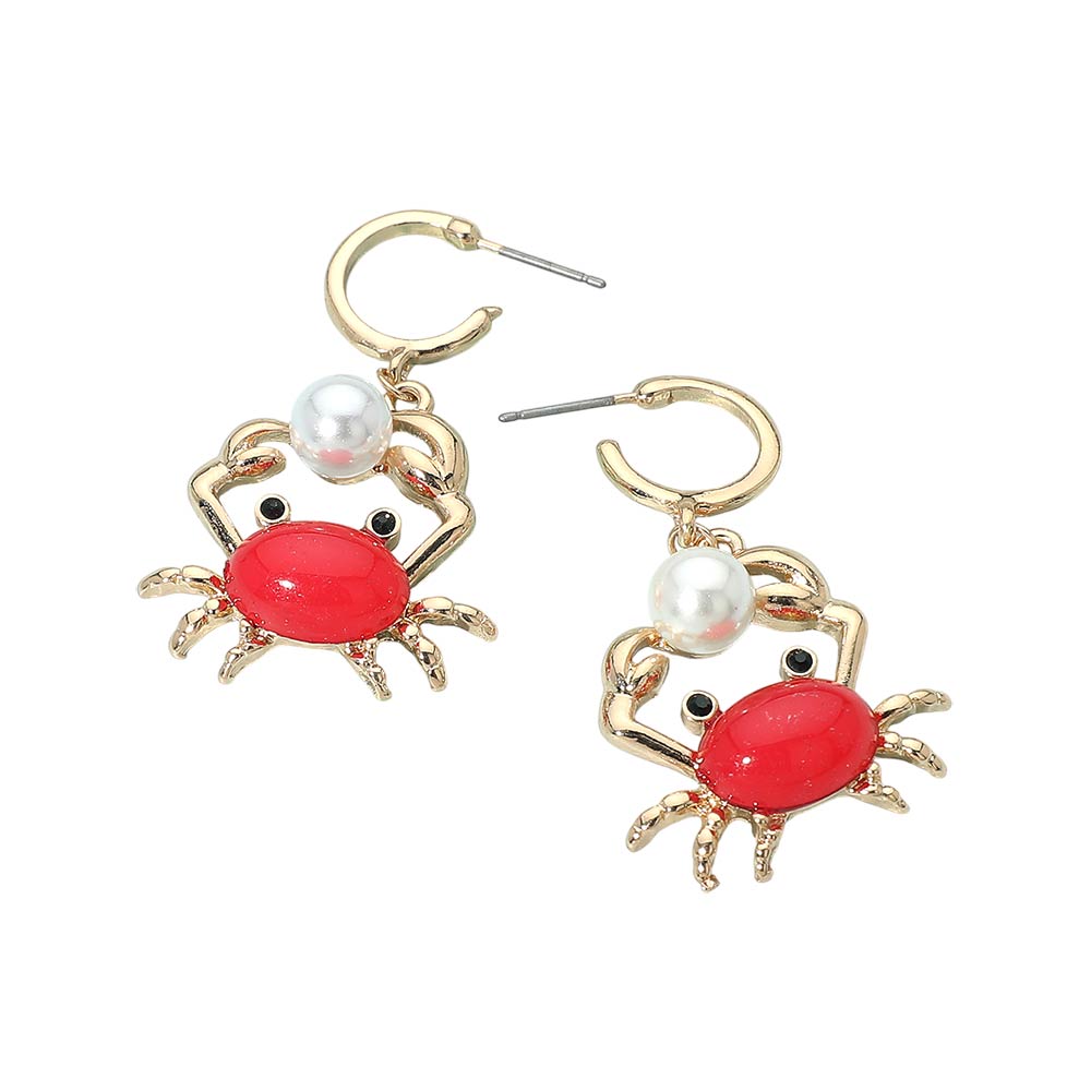Details • Size : 1.2" X 1.7" • Post Back • These crab charm hoop earrings feature a playful ocean-inspired design with a dangling accent for added movement and personality. Lightweight and eye catching, they are perfect for beach themes, summer displays, coastal gifts, and novelty jewelry collections. A fun statement piece for vacations, seaside boutiques, resort wear assortments, and seasonal merchandising with a whimsical, marine-inspired touch. • Lead and Nickel Compliant