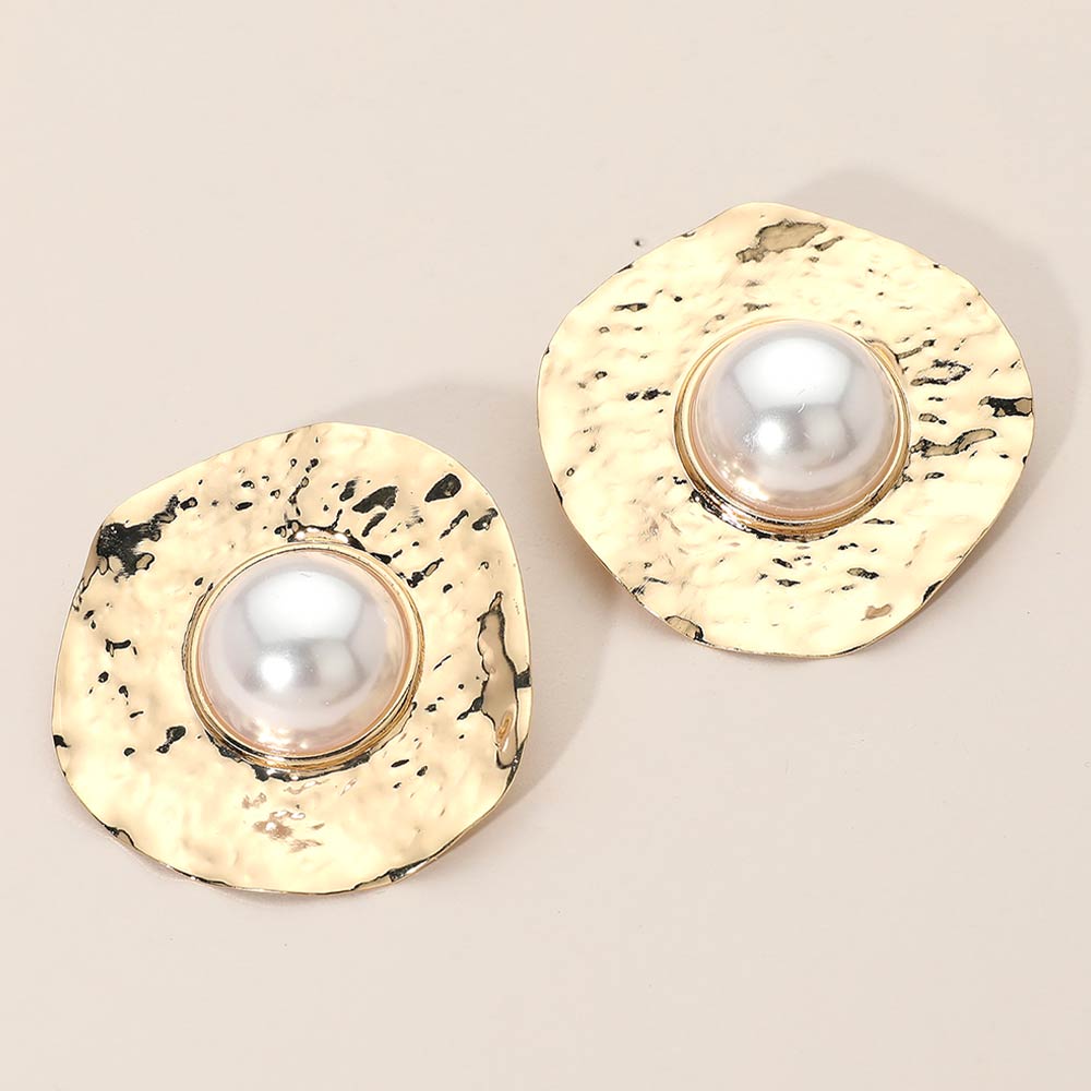 Details • Size : 1.75" X 1.8" • Post Back • Elevate everyday styling with these textured disc stud earrings featuring a bold center accent. Designed for modern versatility, this statement pair adds dimension and shine to casual, work, or evening looks. Ideal for boutiques and gift-ready displays. • Lead and Nickel Compliant