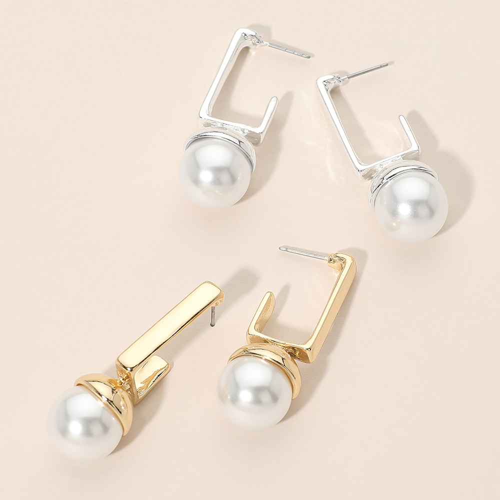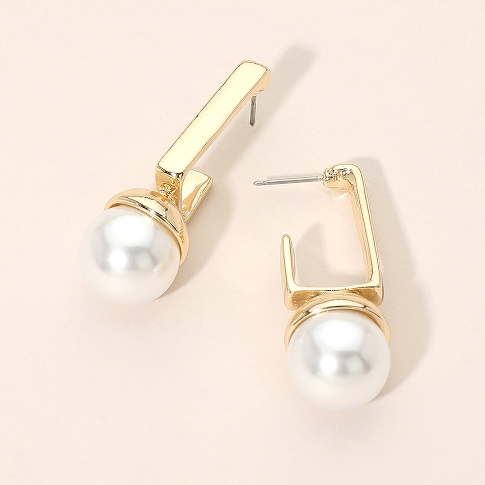 Details • Size : 0.5" X 1.7" • Post Back • These modern pearl drop geometric hoop earrings feature a sleek geometric silhouette paired with a classic rounded drop for a refined, contemporary look. Designed for versatile styling, they transition effortlessly from everyday wear to special occasions, offering a clean, polished finish that complements both casual and dress-focused outfits. • Lead and Nickel Compliant