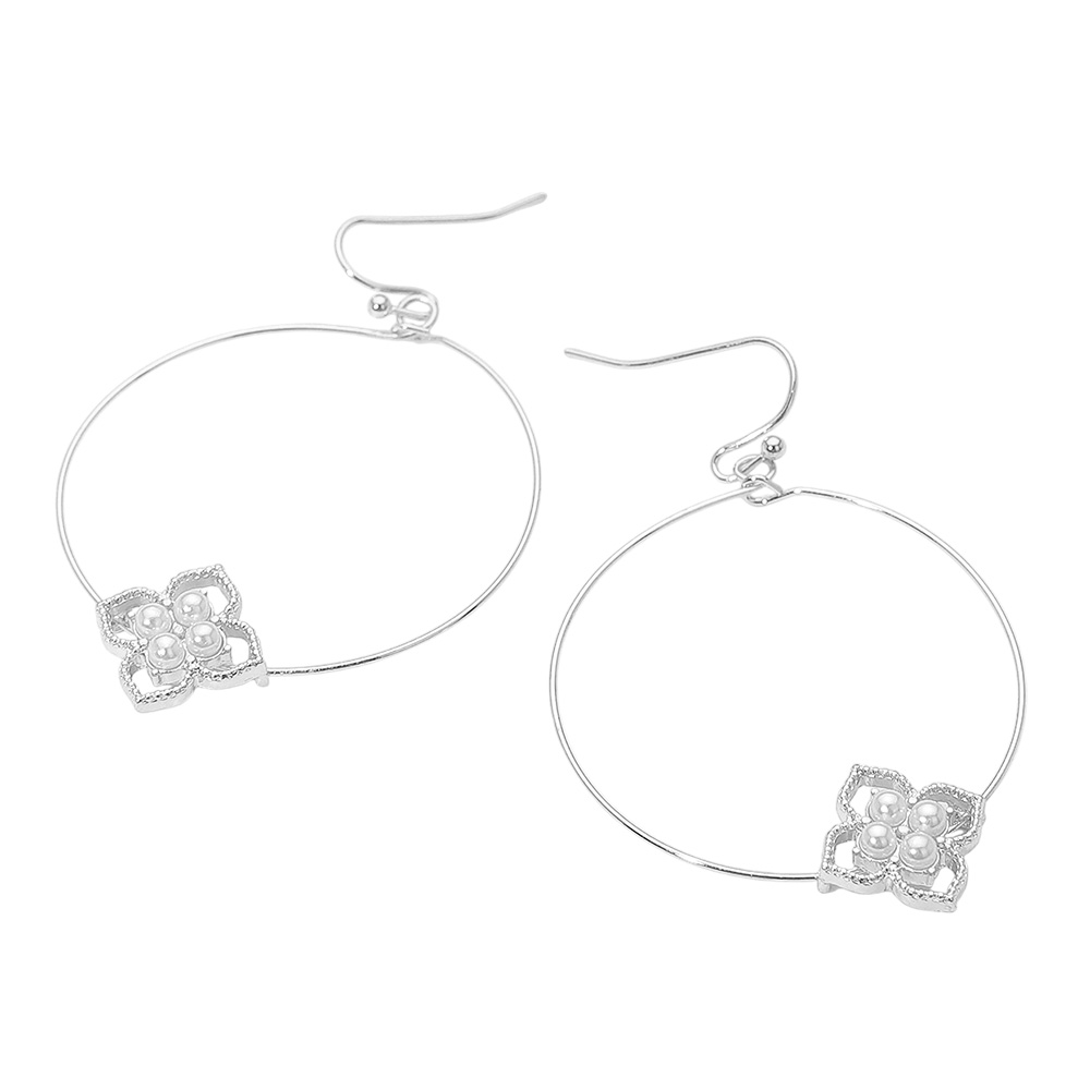 Pearl Floral Accent Hoop Dangle Earrings Pearl Floral Accent Hoop Dangle Earrings Pearl Floral Accent Hoop Dangle Earrings
