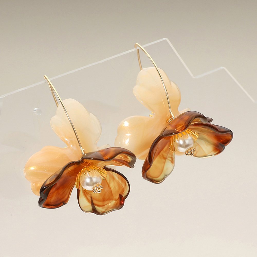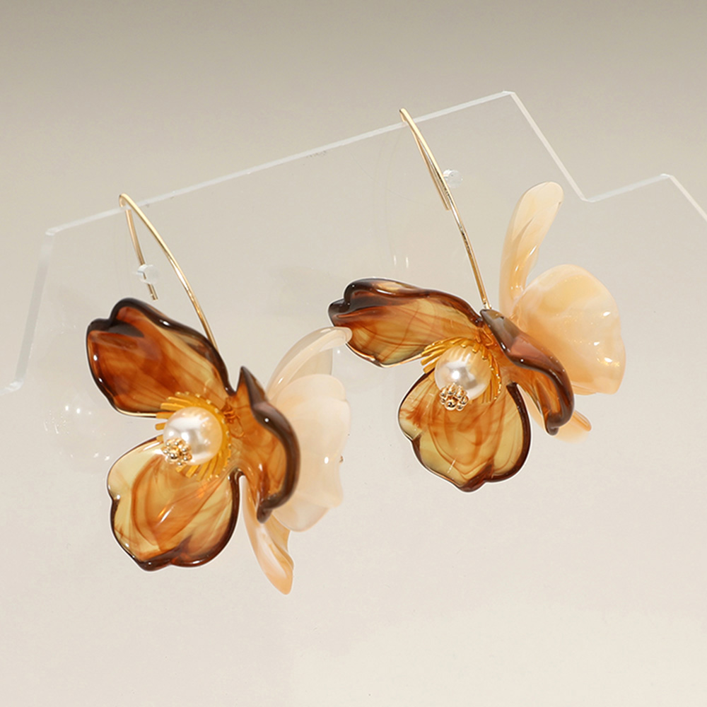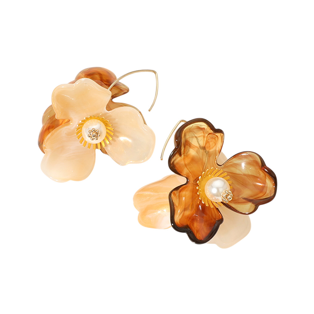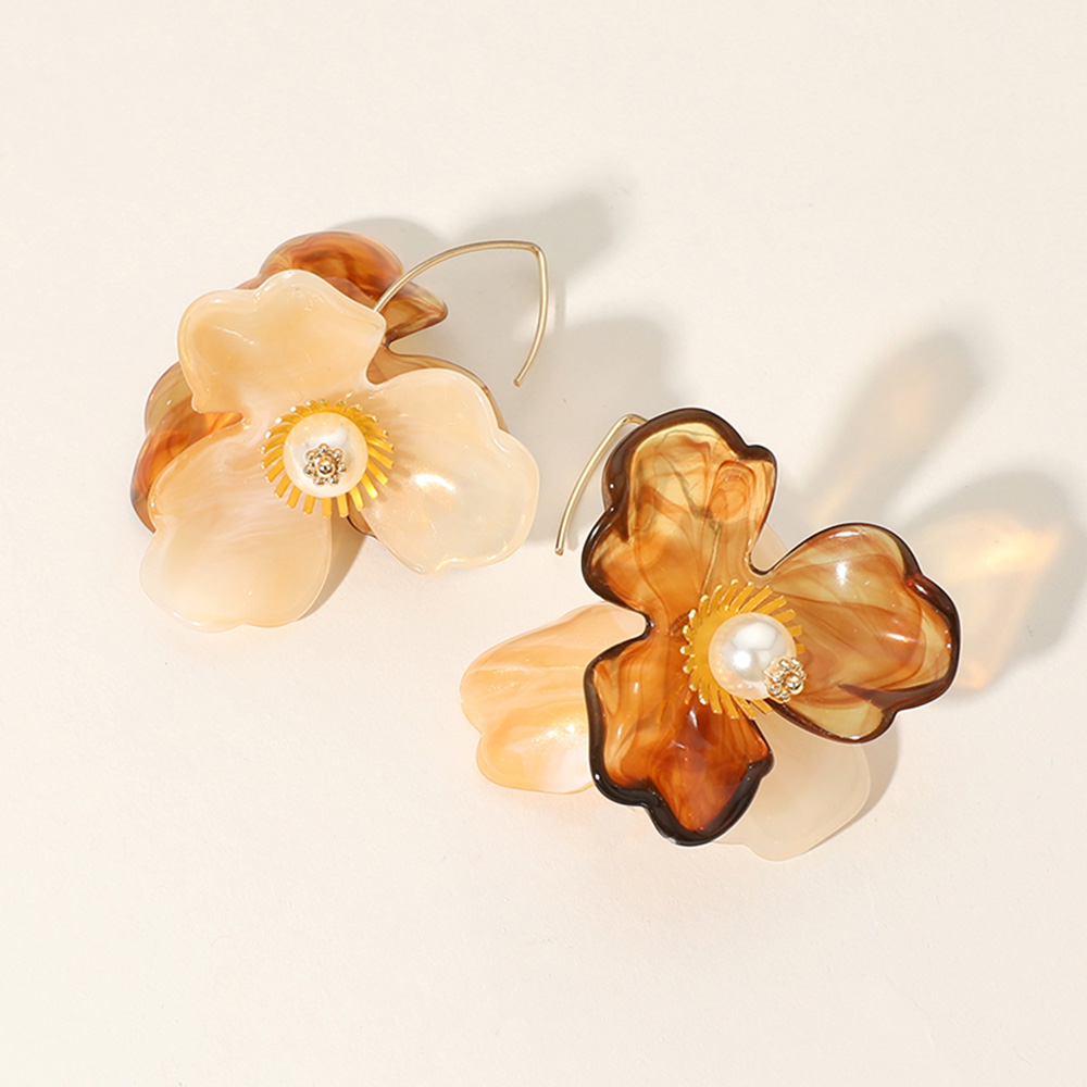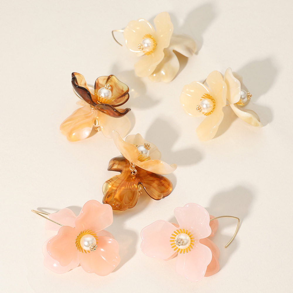 Pearl Pointed Resin Petal Flower Drop Earrings