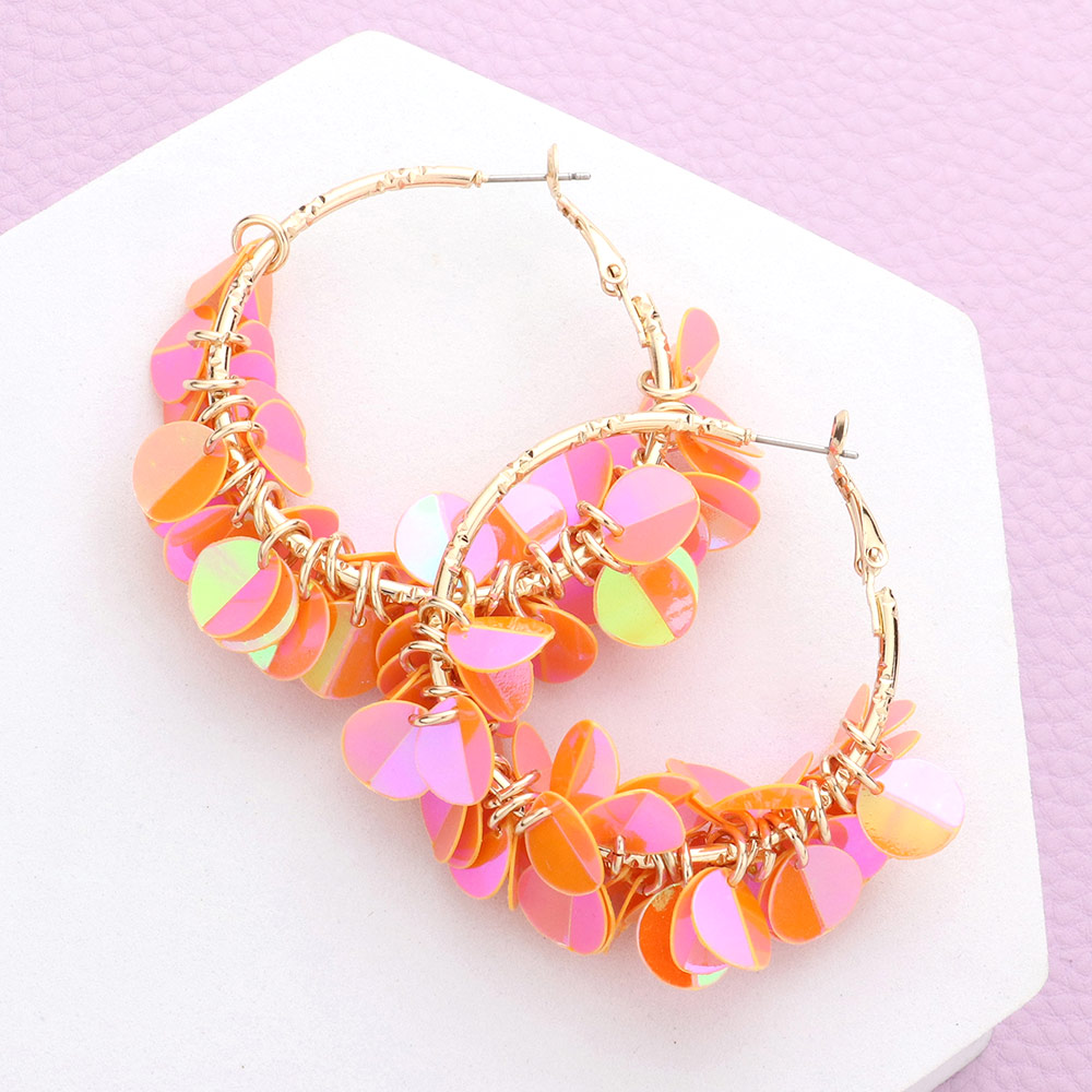 Seed Bead Embellished Raffia Open Circle Dangle Earrings