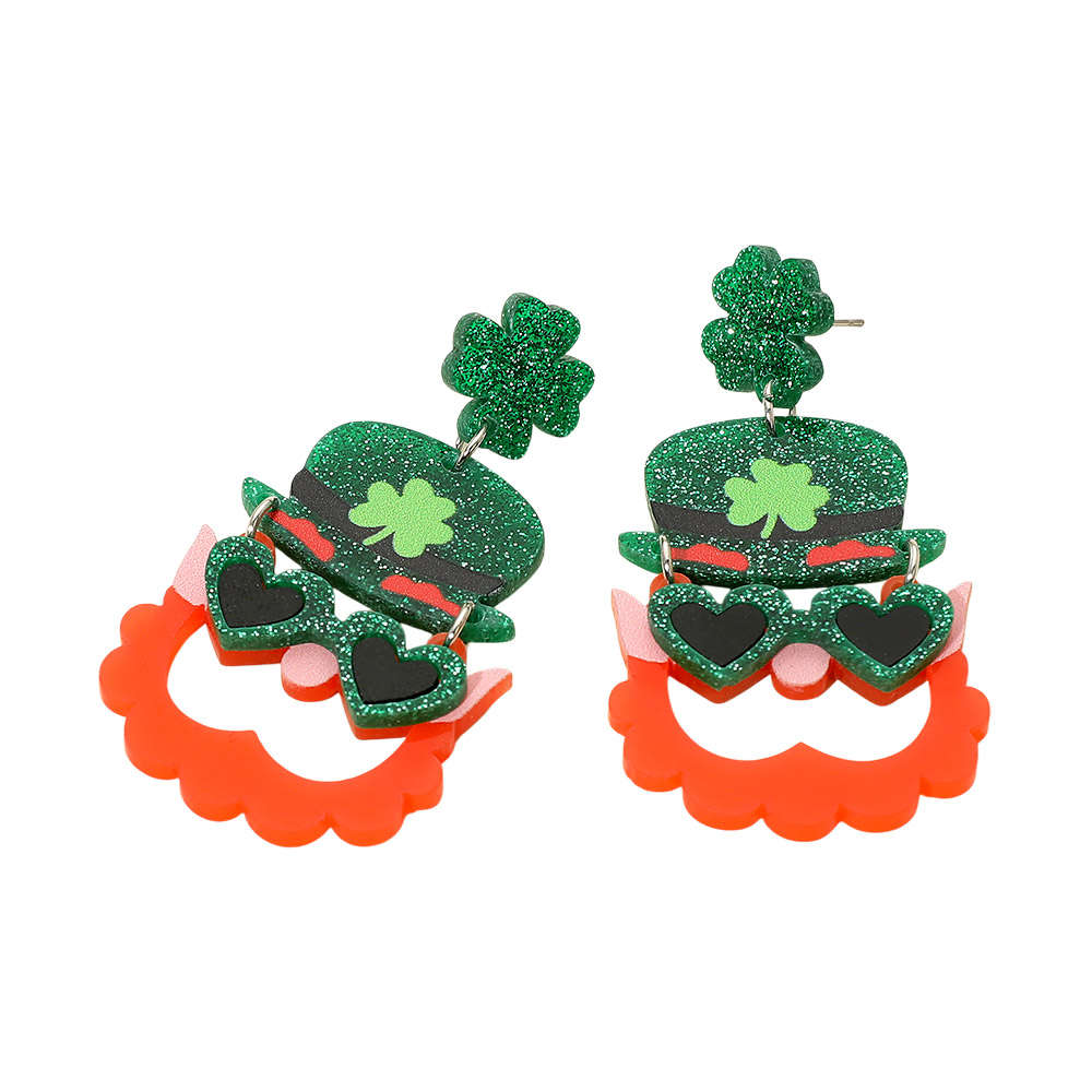 Details • Size : 1.25" X 2.4" • Post Back • Playful leprechaun drop earrings featuring a whimsical character design with layered details and festive charm. A standout accessory for St. Patrick’s Day outfits, themed parties, parades, and seasonal displays, adding fun personality and eye-catching style to any celebration look. • Lead and Nickel Compliant