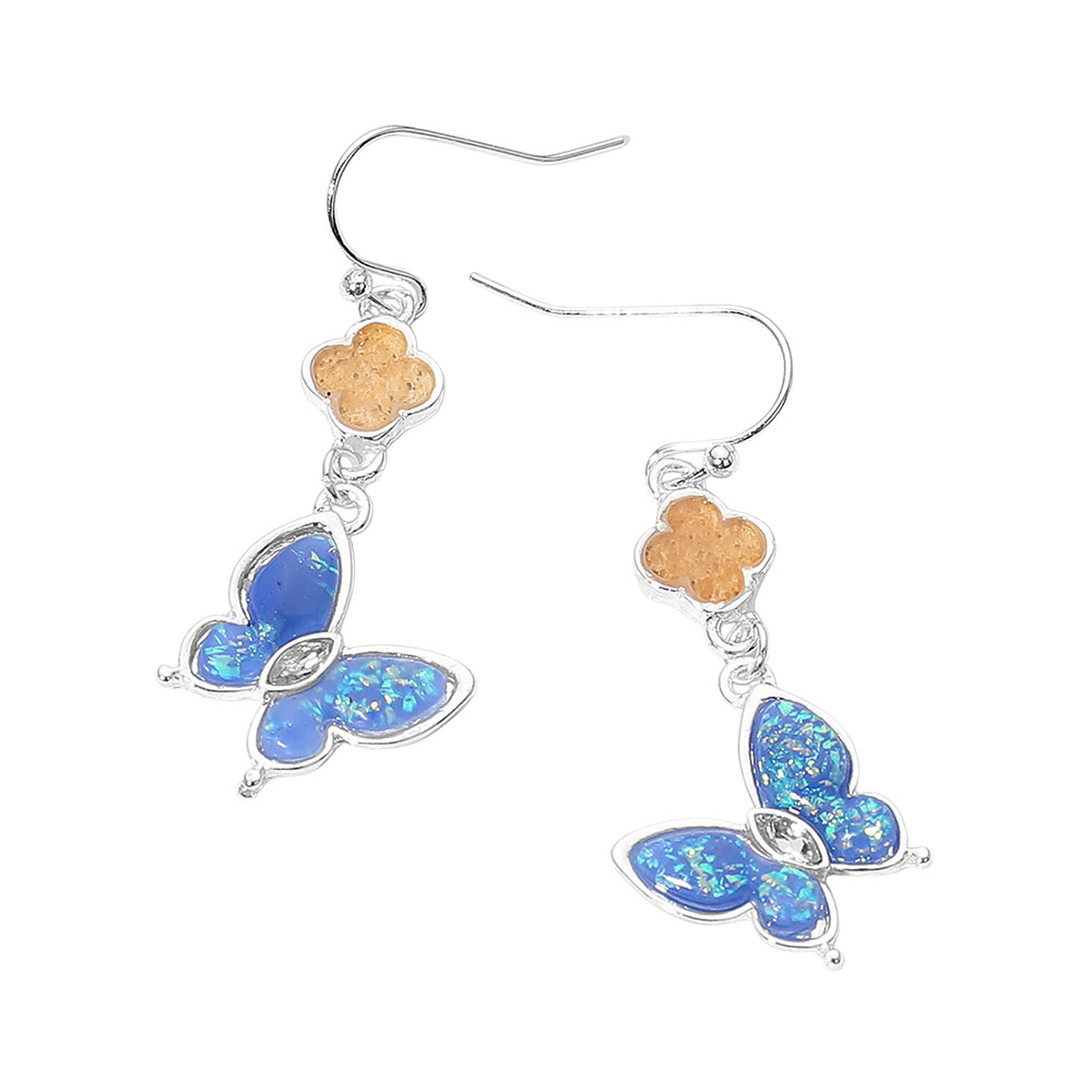 Details • Size : 0.7" X 1.7" • Fish Hook Back • Butterfly charm drop earrings featuring a graceful dangling design with delicate movement. A charming accessory for everyday styling, spring and summer outfits, gift shops, and seasonal collections, adding a whimsical touch that pairs easily with casual looks or dressy ensembles. • Lead and Nickel Compliant