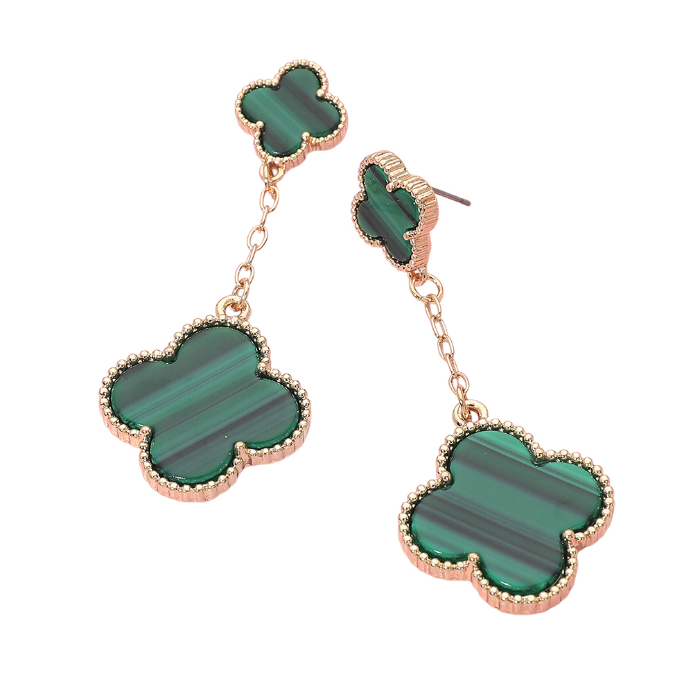 • Stylish chain drop earrings featuring layered quatrefoil charms for a soft, elegant look with gentle movement. This timeless silhouette adds refined detail to everyday outfits and special occasion styling, making it a versatile choice for boutiques, gift assortments, and curated jewelry collections seeking modern yet classic appeal.